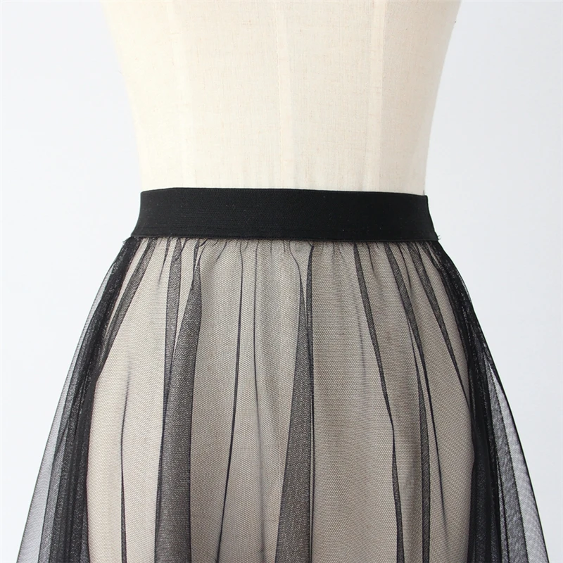 Black White Long Tulle Lace Mesh Skirt Women Petticoat Underskirt Summer Korean Irregular Cover Up Skirt Tutu Skirt For Girl