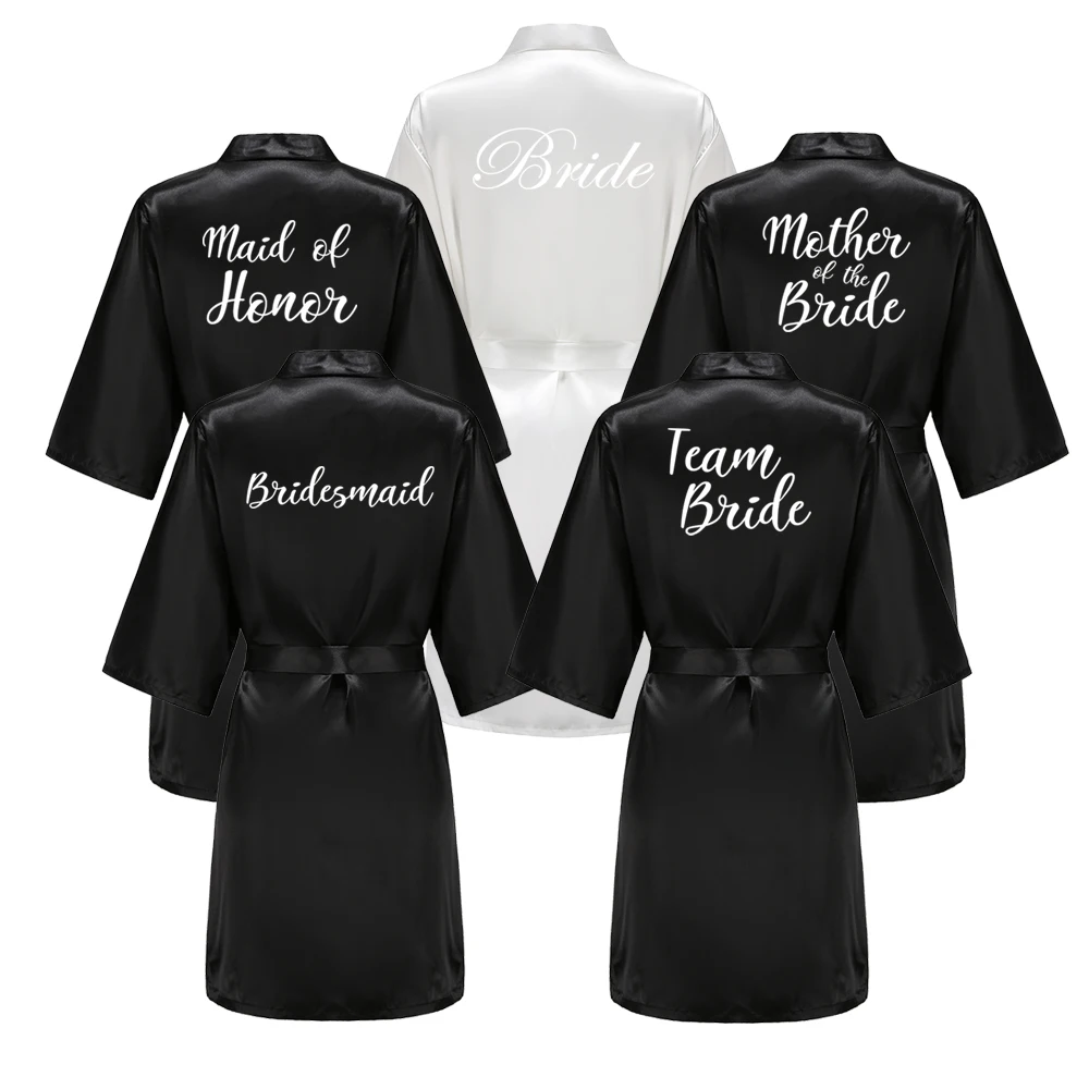 Black Women Silky Satin Robe Wedding Bridal Party Bride Bridesmaid Robes Kimono Loungewear Dressing Gowns
