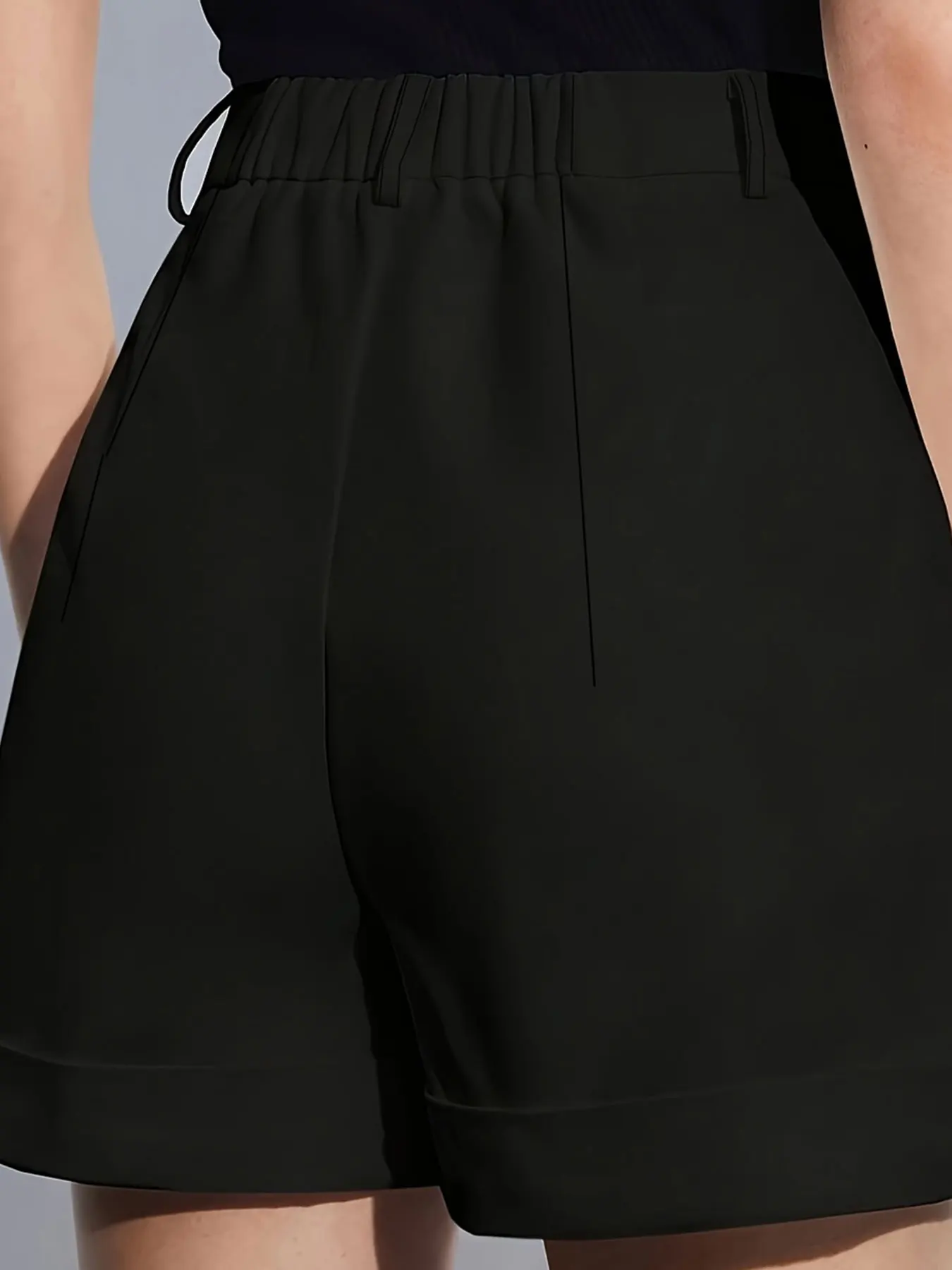 Black Women’s Oversized Woven Solid Color Casual Shorts Comfortable Loose Fit High Waist Knee-Length Summer Fashion Black