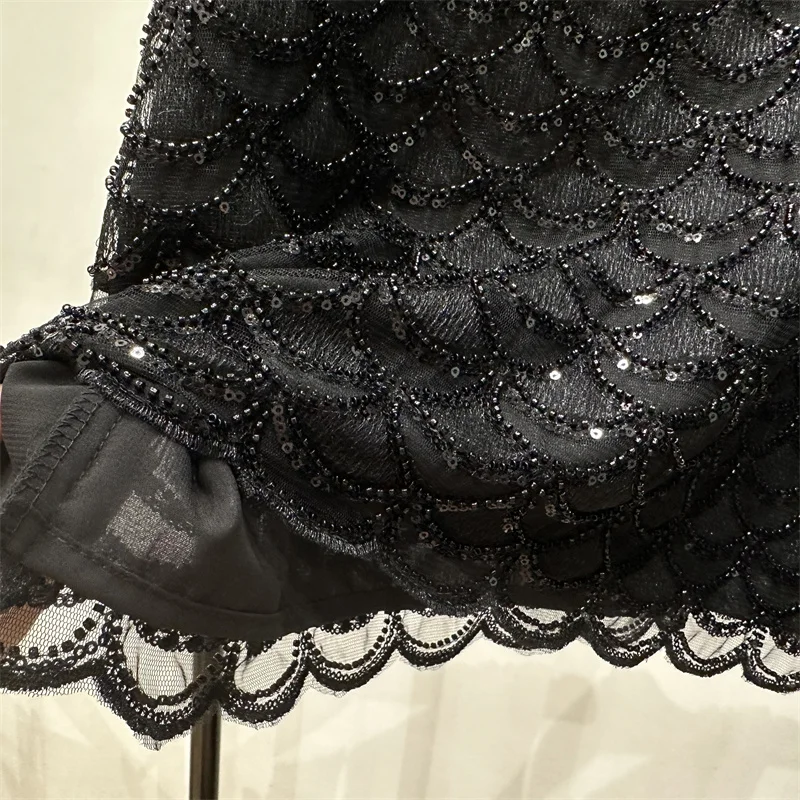 Bling Bling Sequined Tanks Tops Women Fashion Heavy Industry Double-sided Beaded Vest Vacation Leisure Beaded Chiffon Top