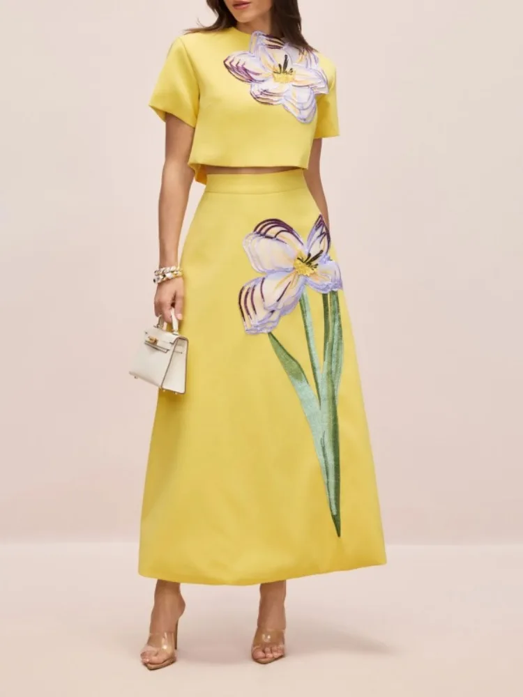 Bonboho Women’s Matching Set Floral Printed Short Sleeve Cropped Top & Flared Midi Skirt 2026 Summer Casual Skirt Sets
