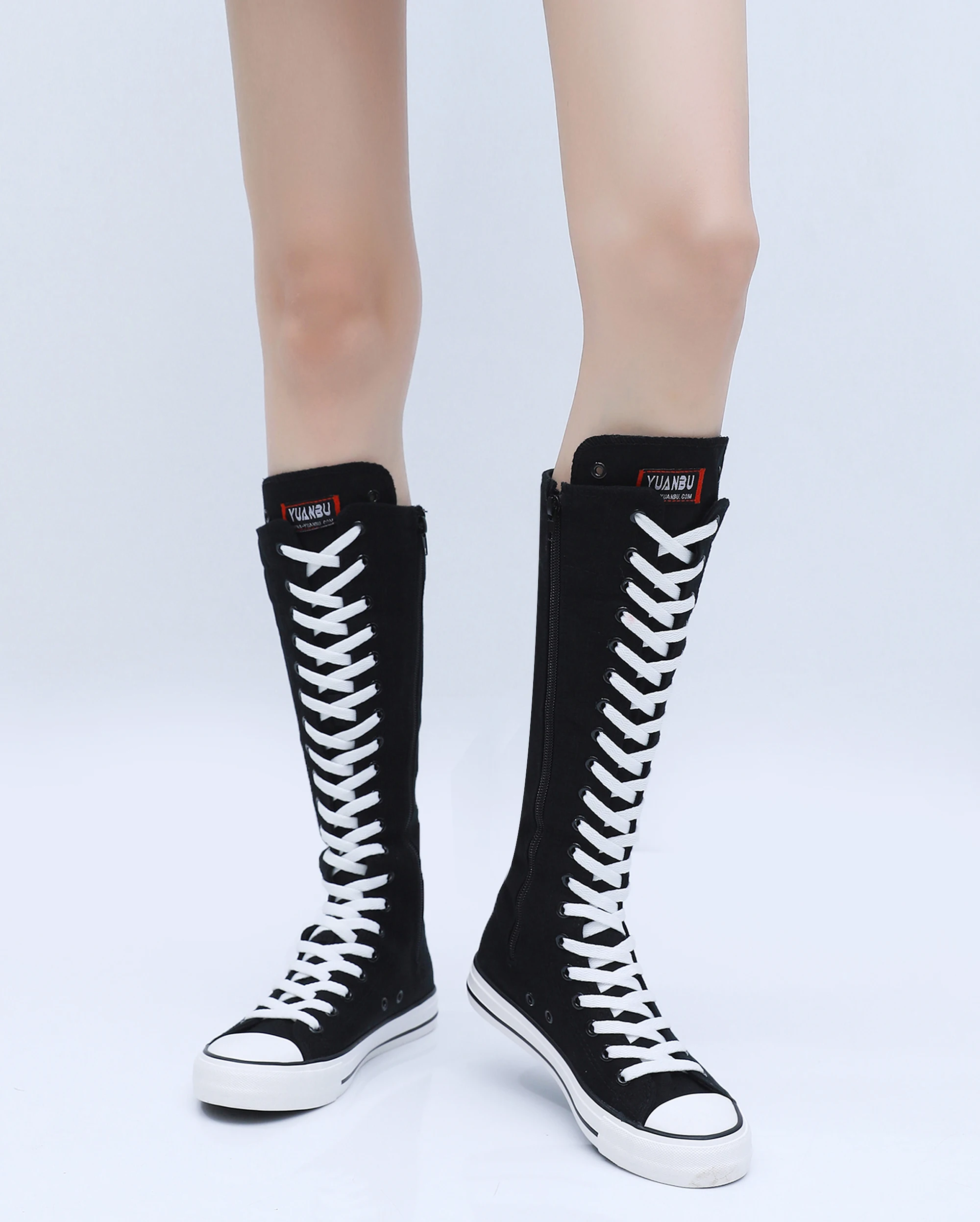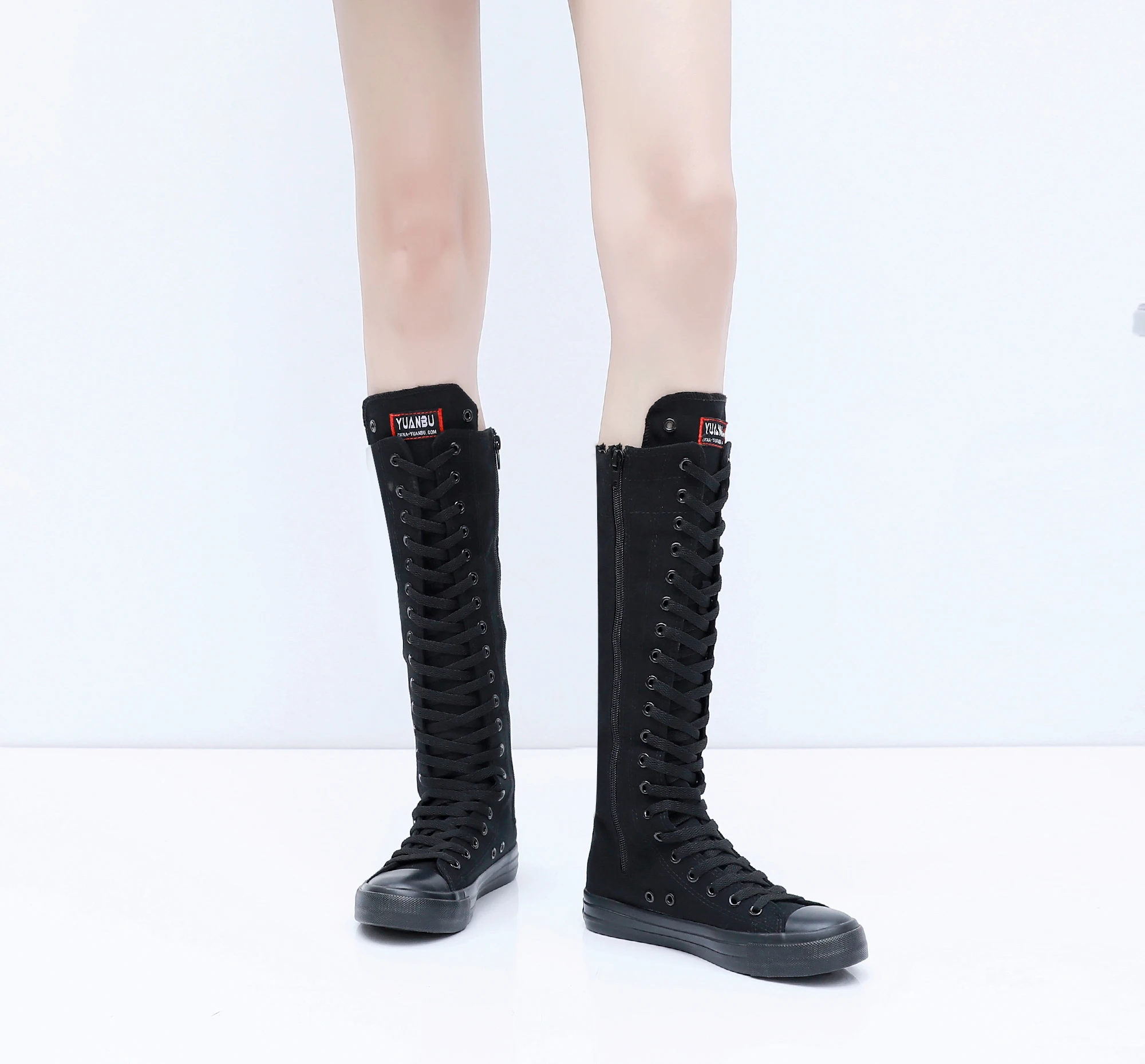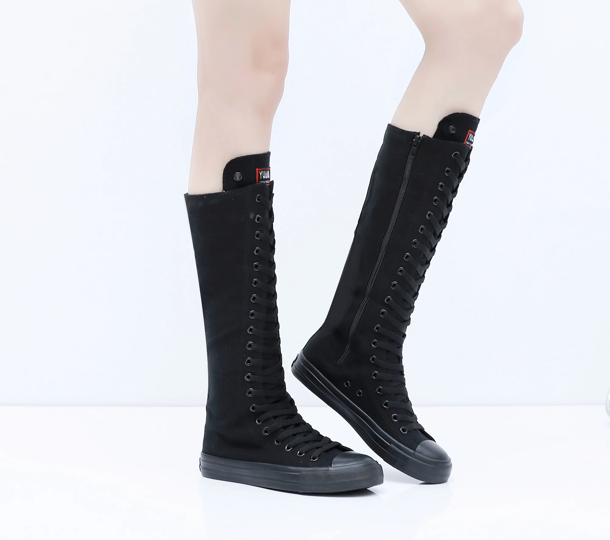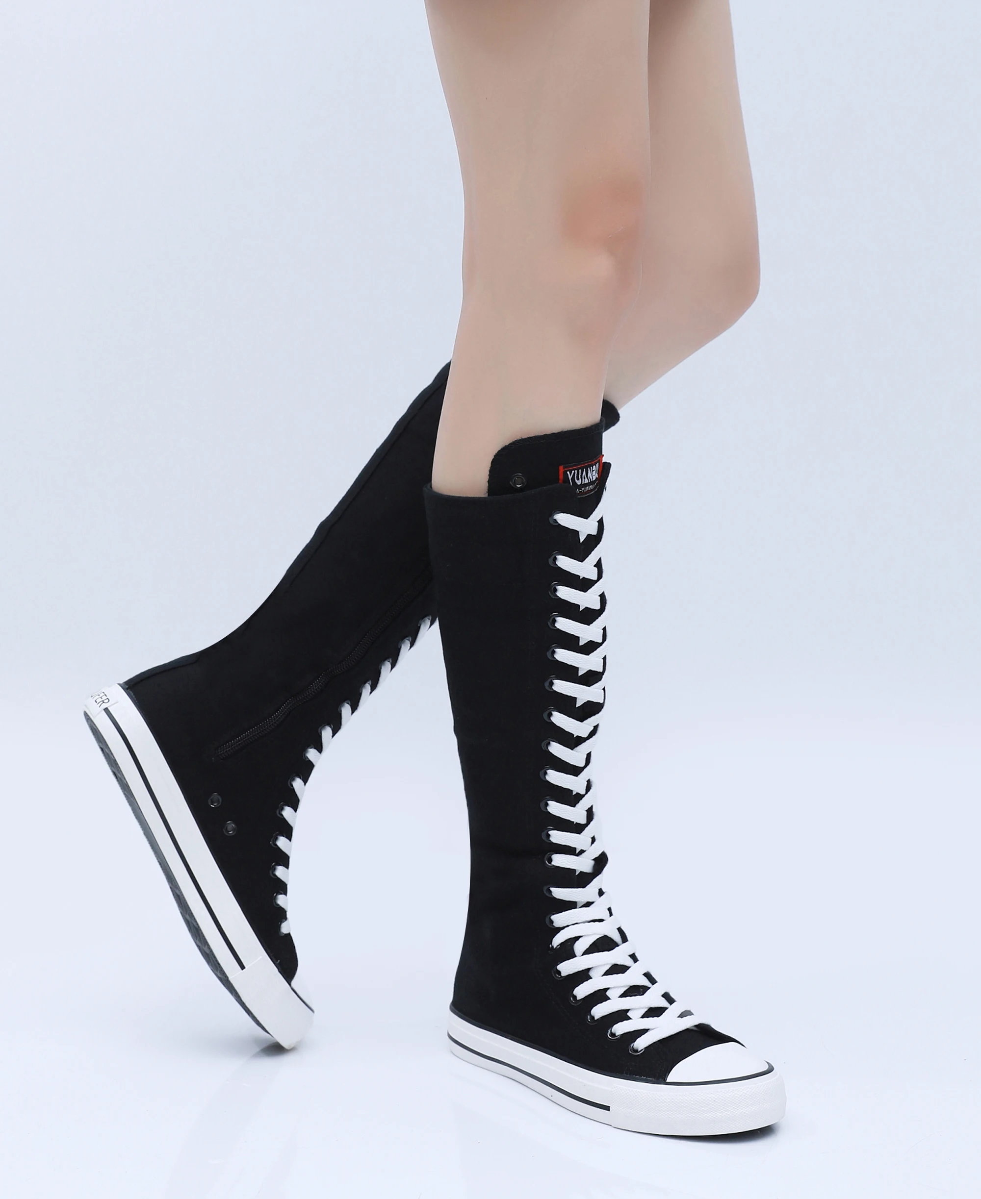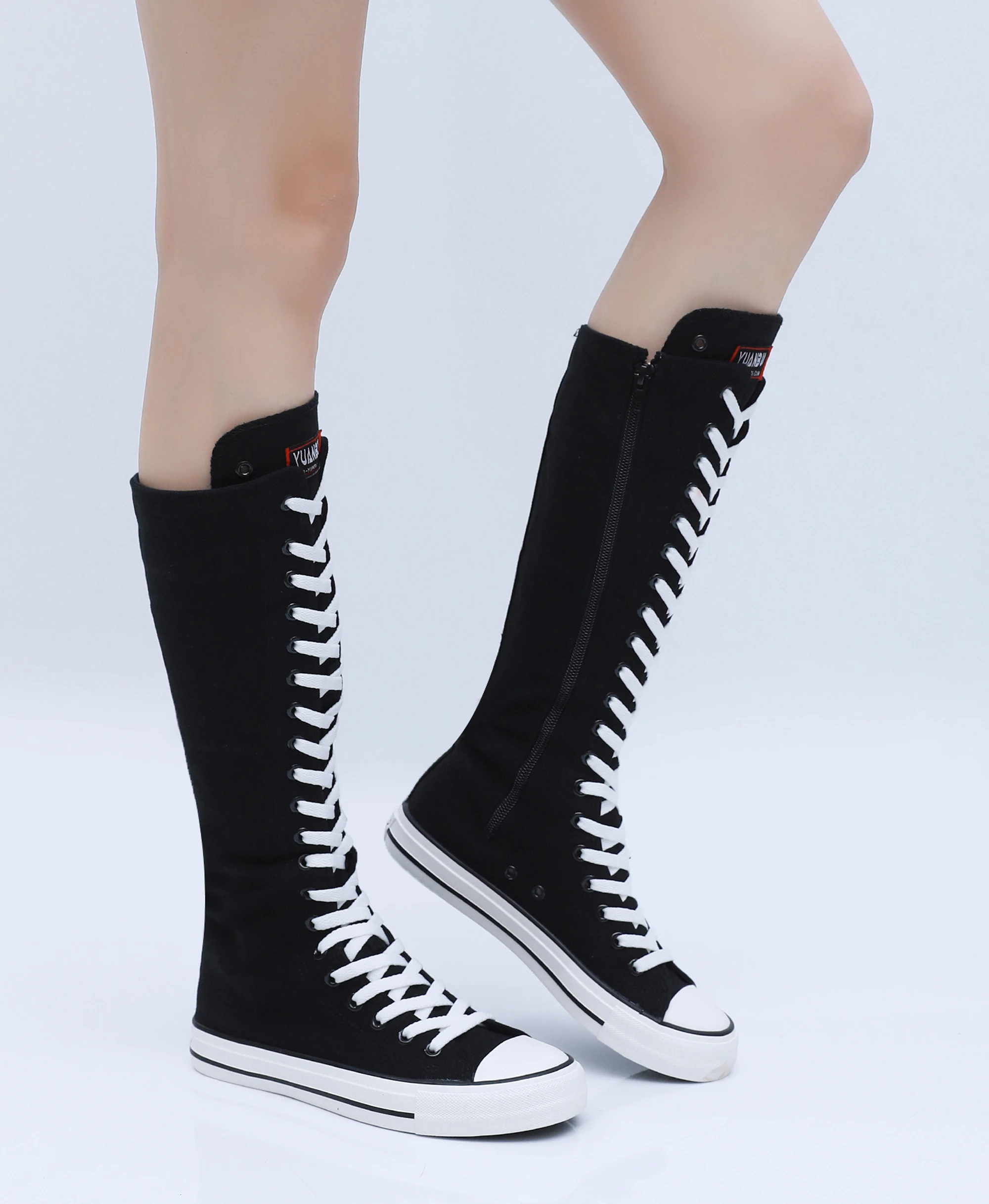 Boots Women Sneakers Canvas Casual High Top Shoes Long Boot Lace-Up Zipper Comfortable Flat Boot Sneakers Tenis Feminino