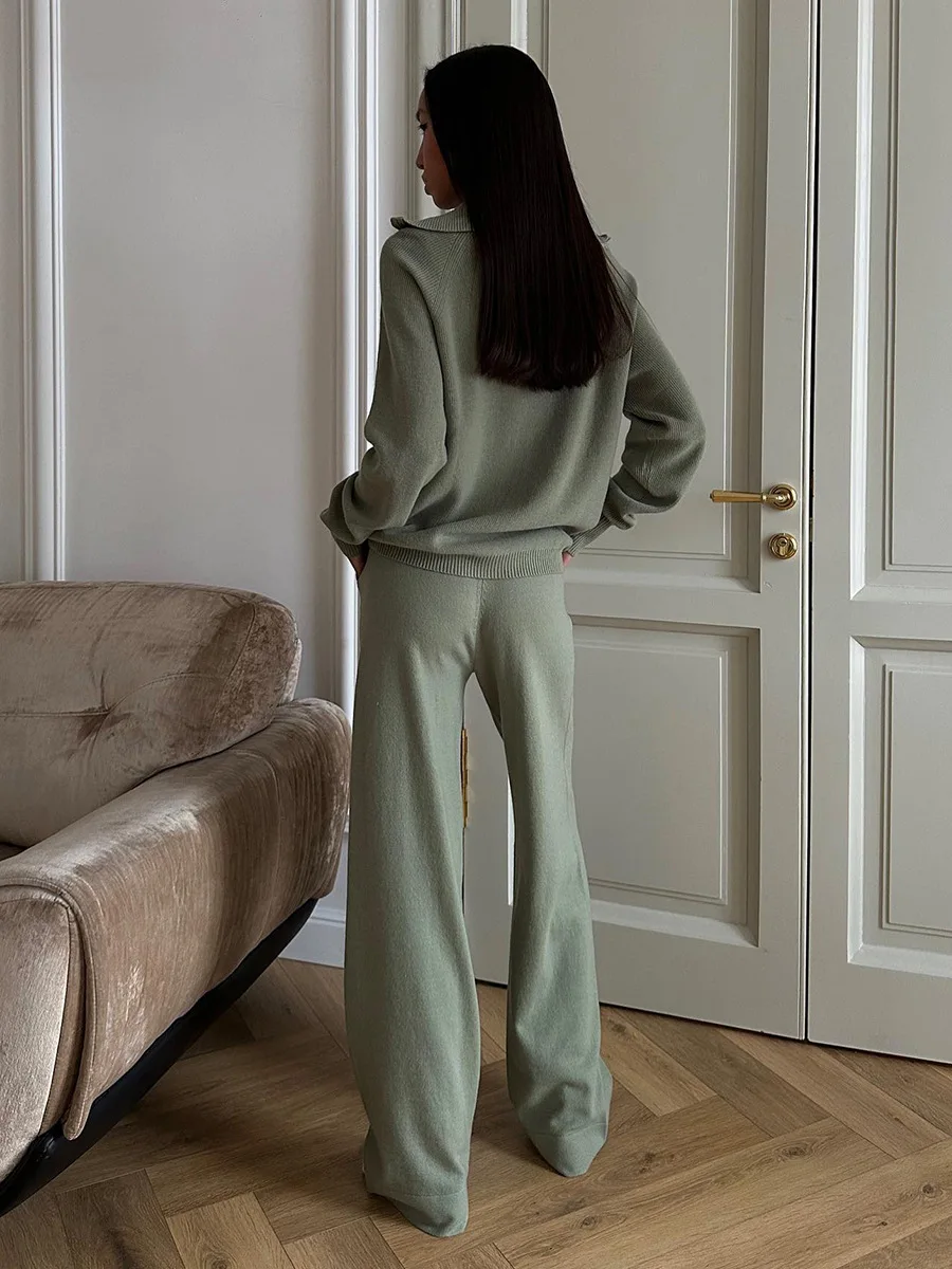 Bornladies Women’s New Knit Zip Up Cardigan Wide Leg Pants Set Soft Loose Fit Hooded Elastic Waist Autumn Winter Fashion Sets