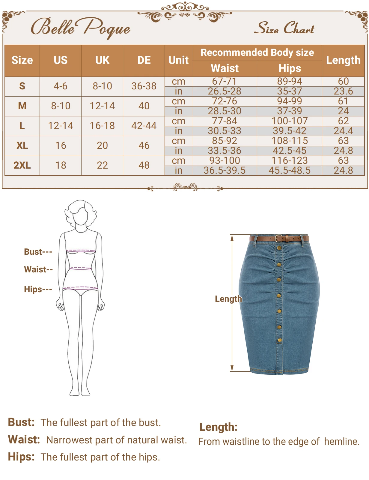 BP Women Vintage Jean Skirt With Belt High Waist Ruched Front Bodycon Skirt