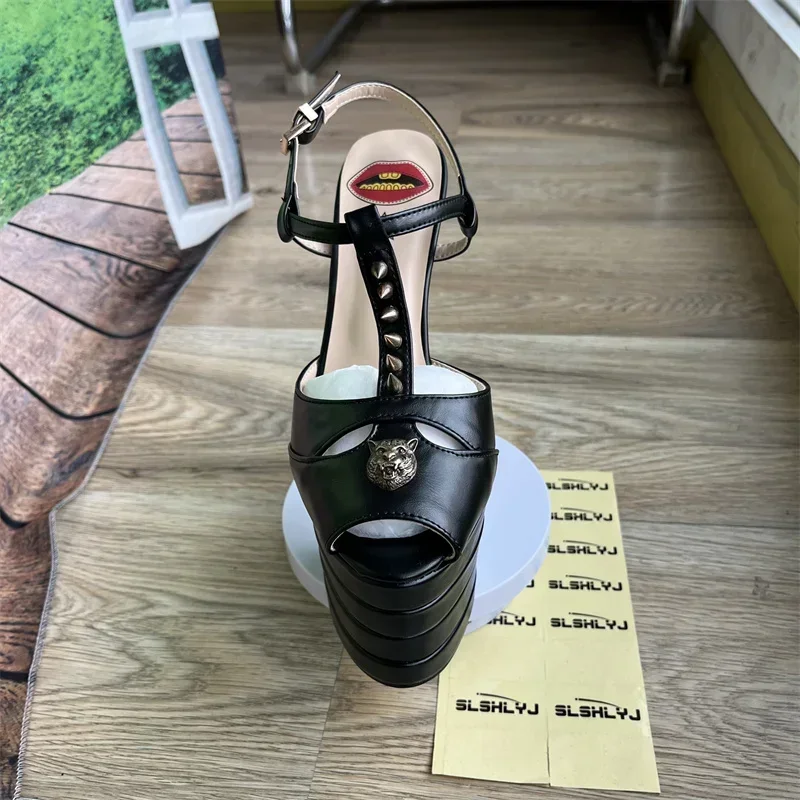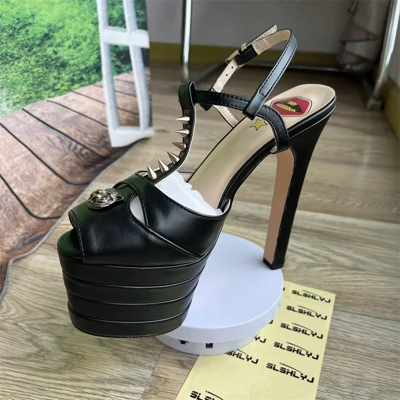 Brand Sexy Rivet 16cm High Heel Sandals Platform Party Wedding Ball T-stage Women Shoes High Quality Large 43summer Female Shoes