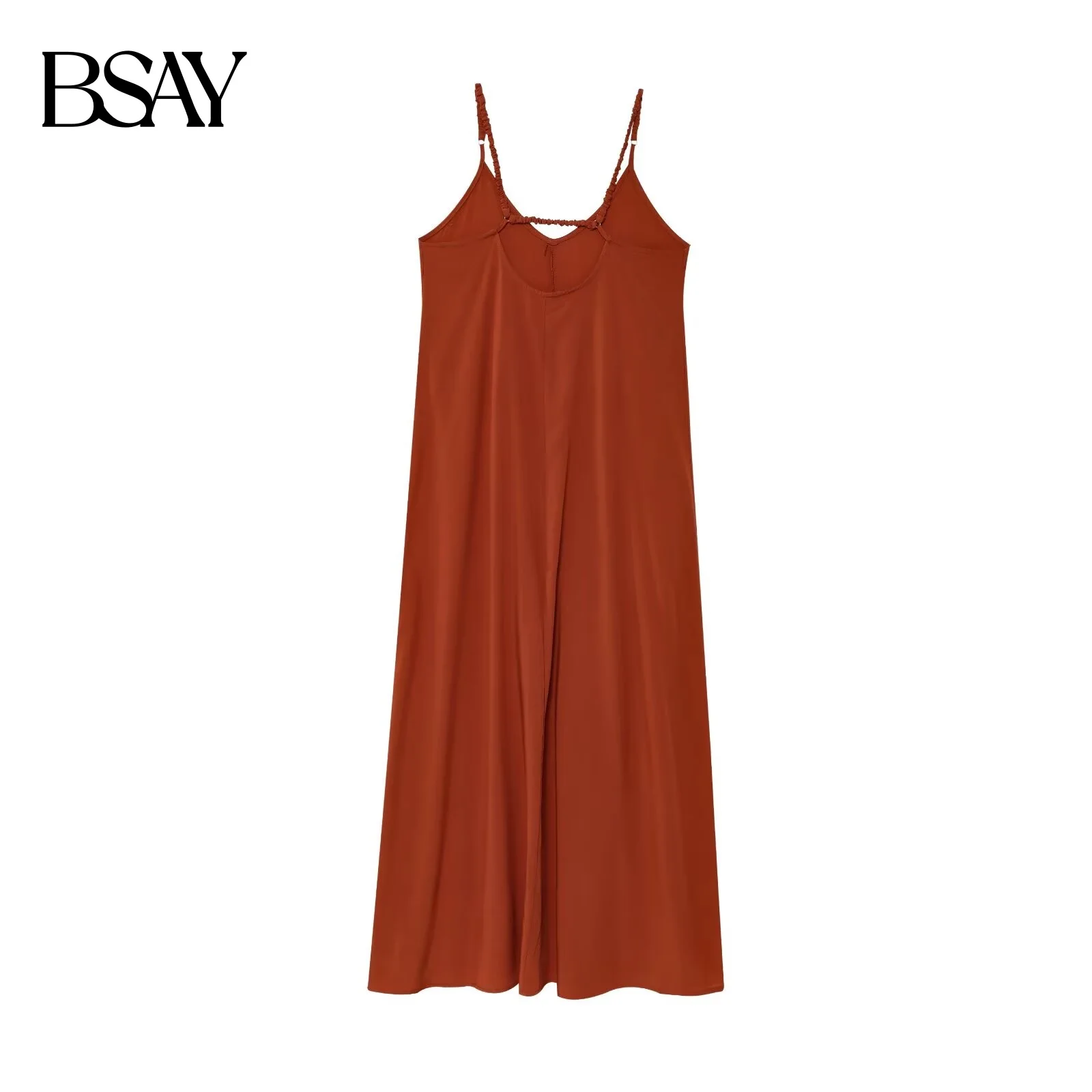 BSAY Dress for Women Fashion Summer New 2025 Solid Fold Backless Sling Sleeveless Midi Dresses Chic Female French Evening