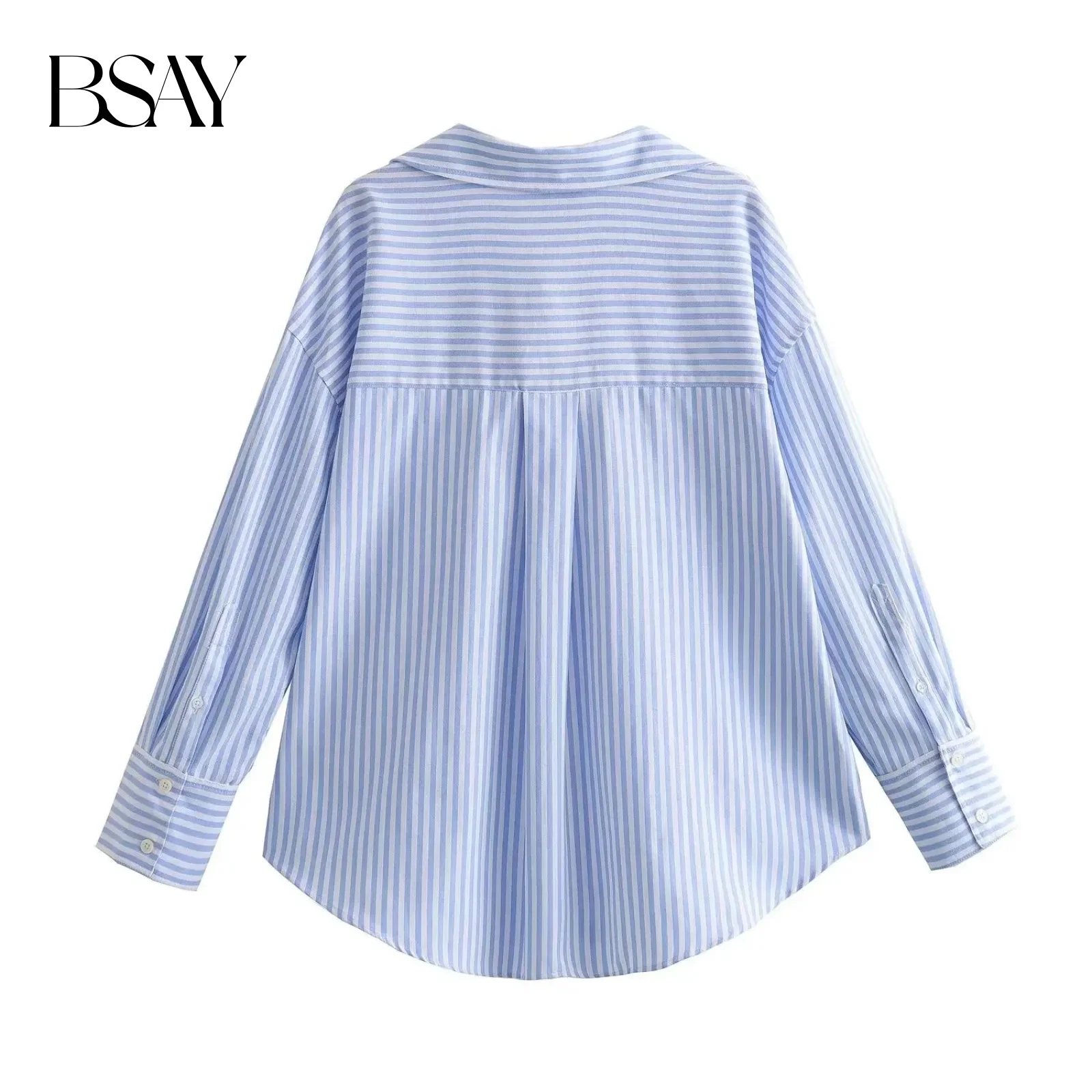 BSAY Women Fashion Long Sleeve Single-breasted Lapel Cotton Oxford Blouse Street Clothing Shirt Chic Ladies Crop Tops Mujer