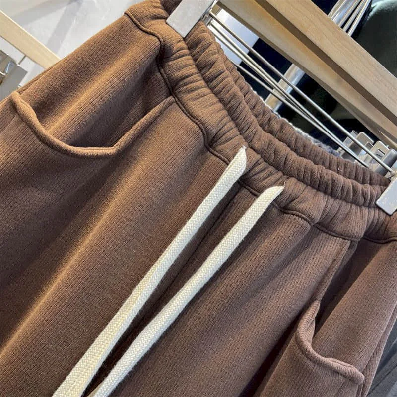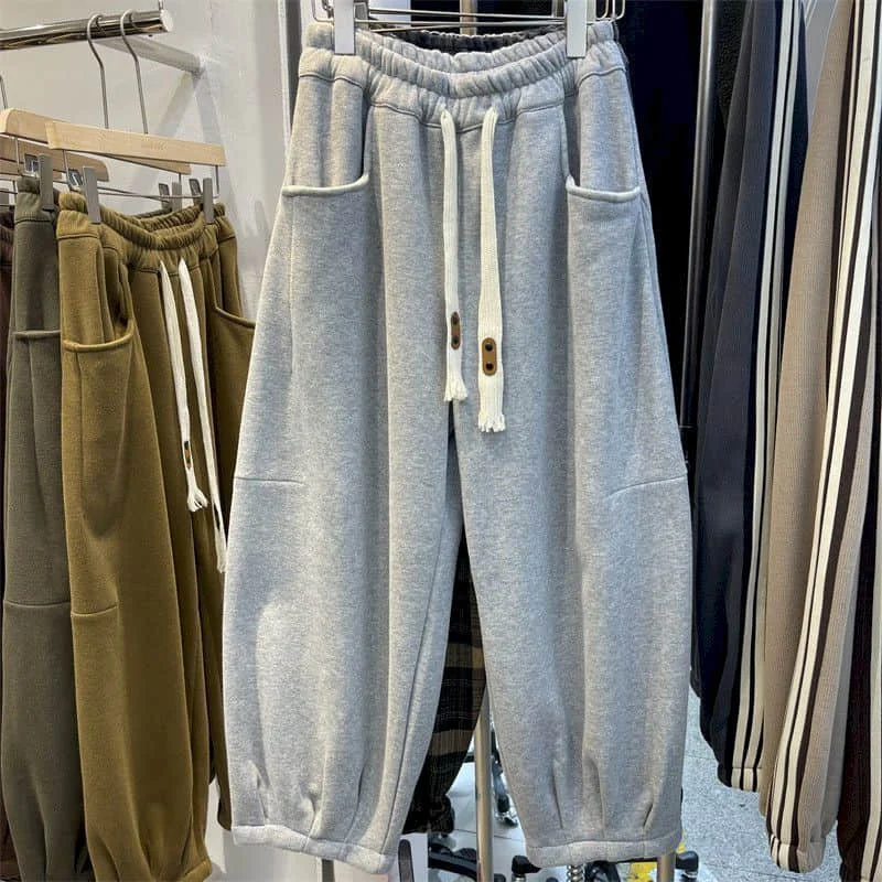 Cargo Pants Women Sporty Solid Plush Sweatpants Korean Style Casual Drawstring Elastic Waisted Streetwear Clothing Harem Pants