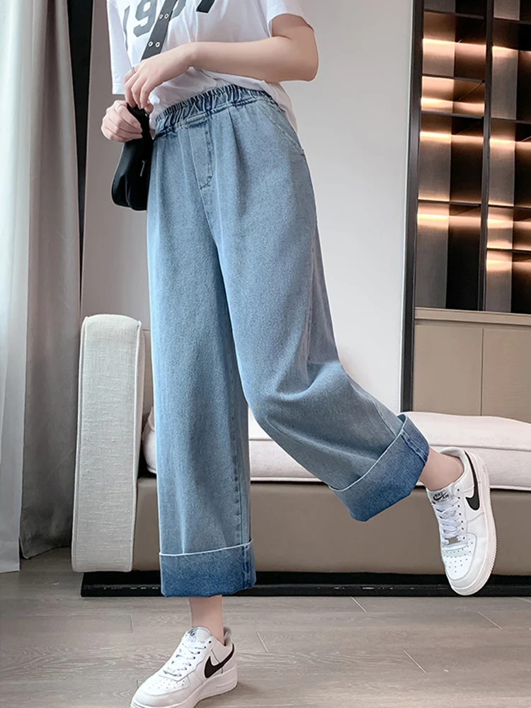 Casual Mom Baggy Jeans For Woman Autumn Loose Plus Size Wide Leg Jeans Straight Elastic High Waisted Denim Pants Women Slacks