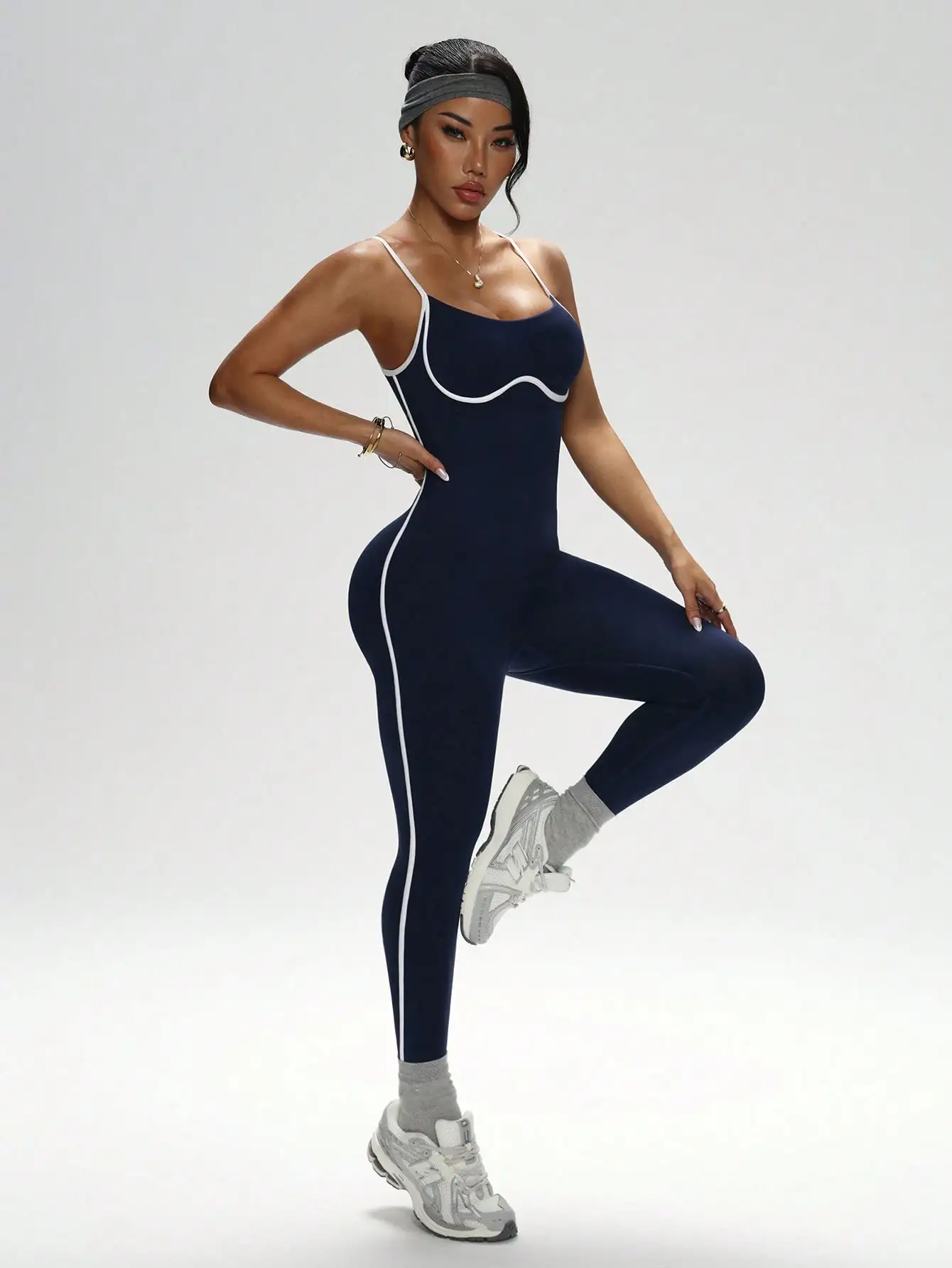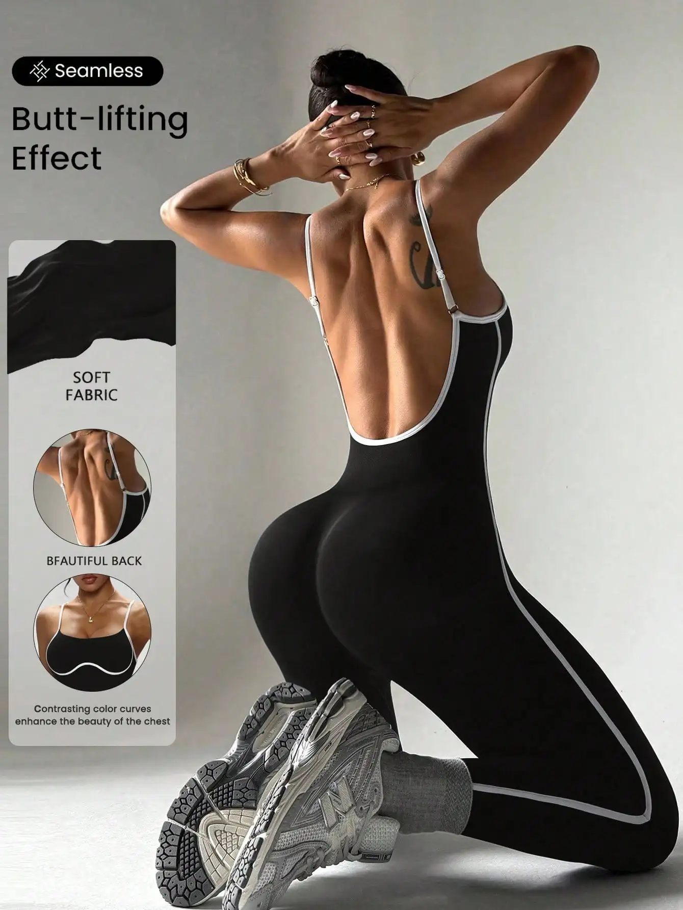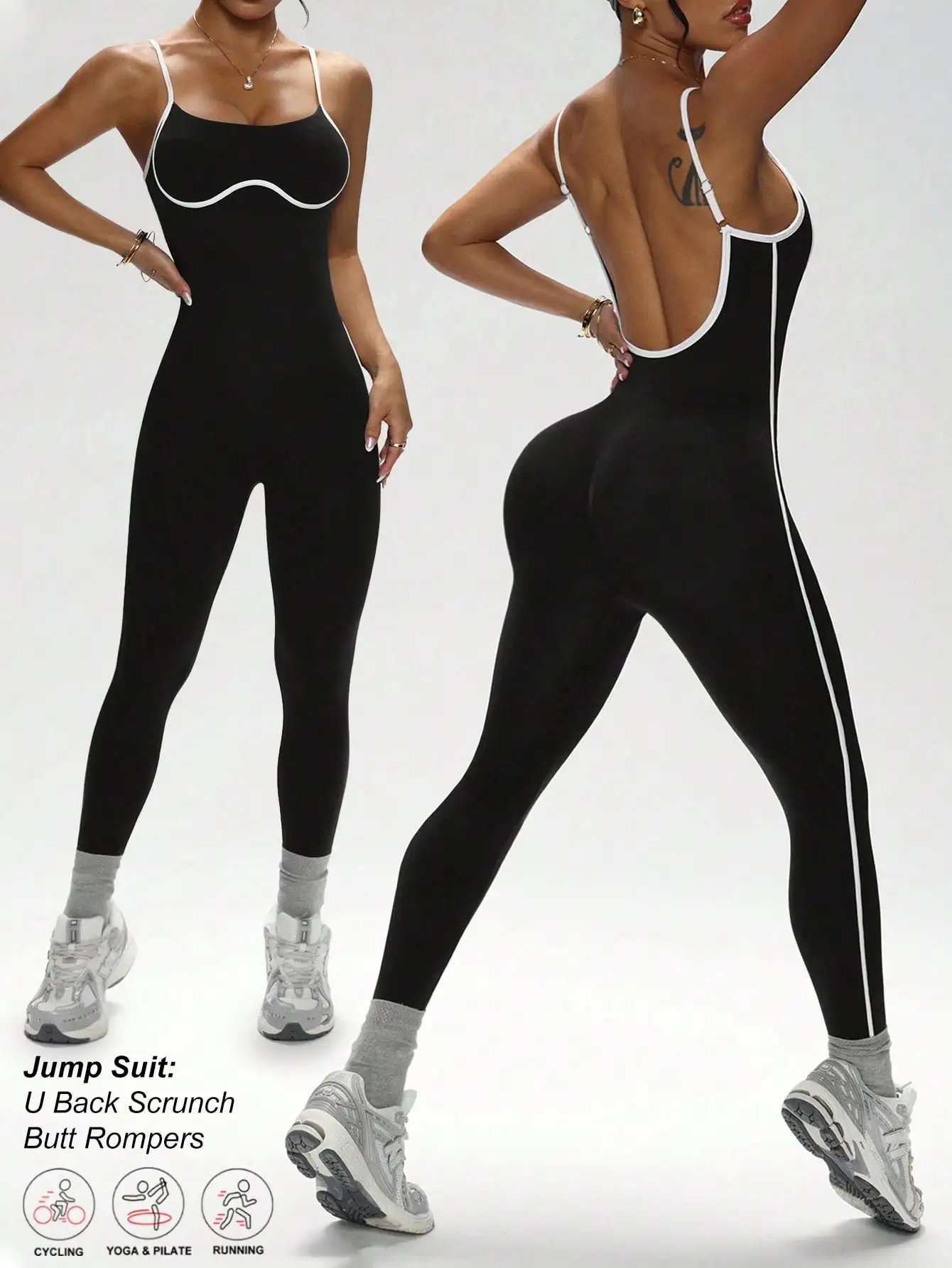 Casual sports hot girl running shockproof back hollow waist sexy jumpsuit with a tight base