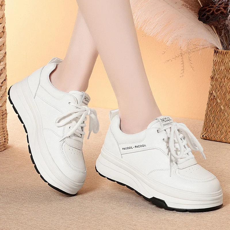 Casual Sports Shoes Women Spring Autumn Soft Leather Sole Comfortable Leather Shoes Versatile Thick Sole White Shoes Fashionable