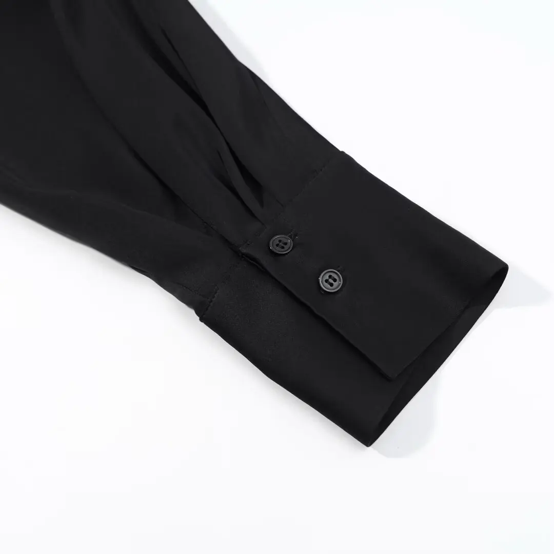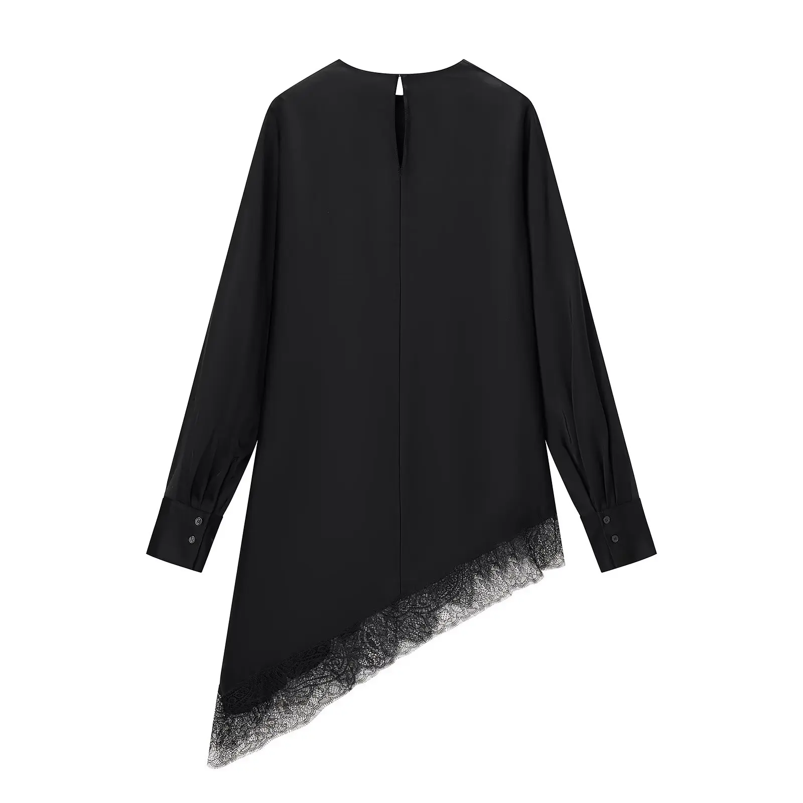 CharmChant Black Satin Asymmetrical Lace Long-Sleeve Shirt for Women Y2k Harajuku Fashion Elegant Sleeveless Shirt Blouse Female