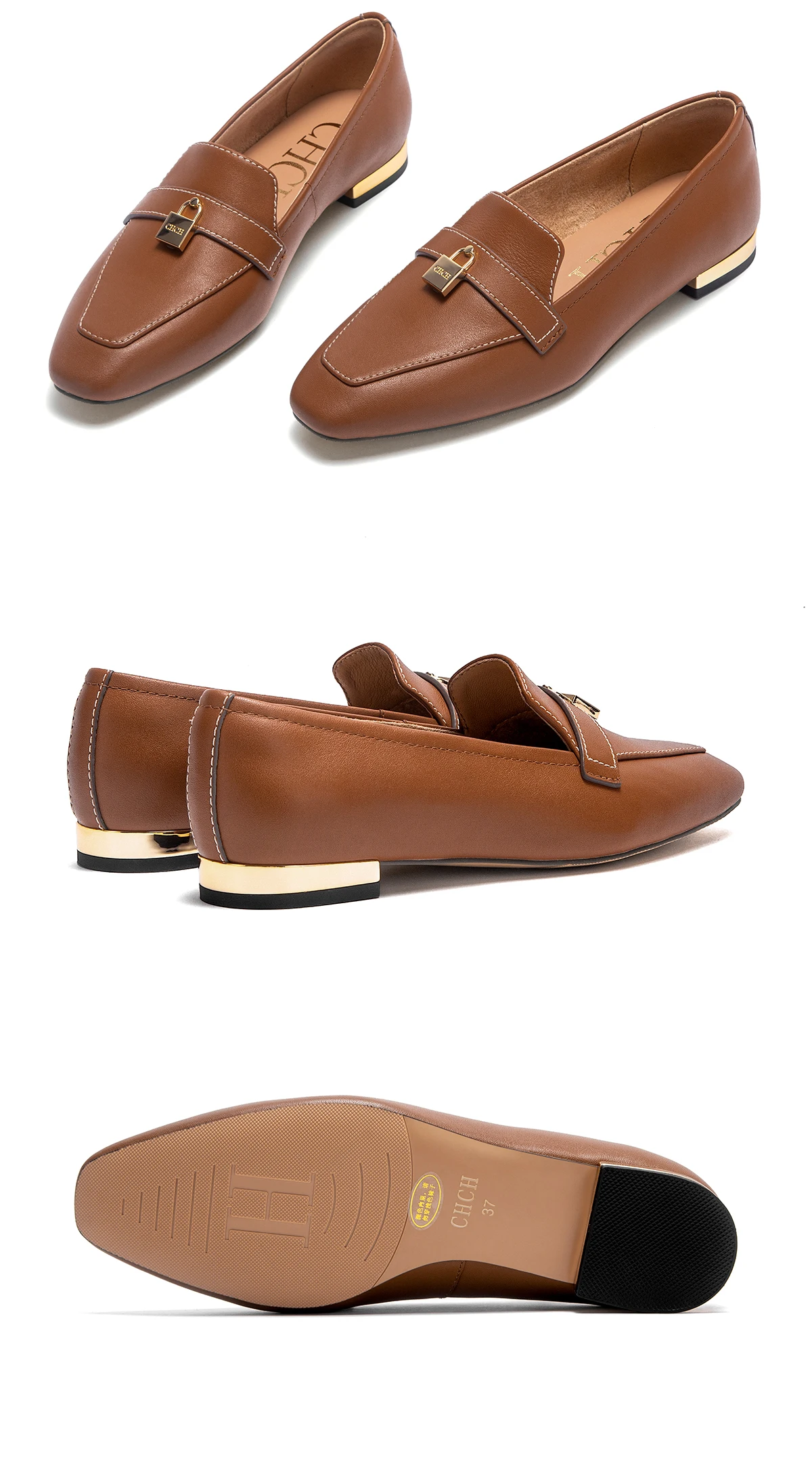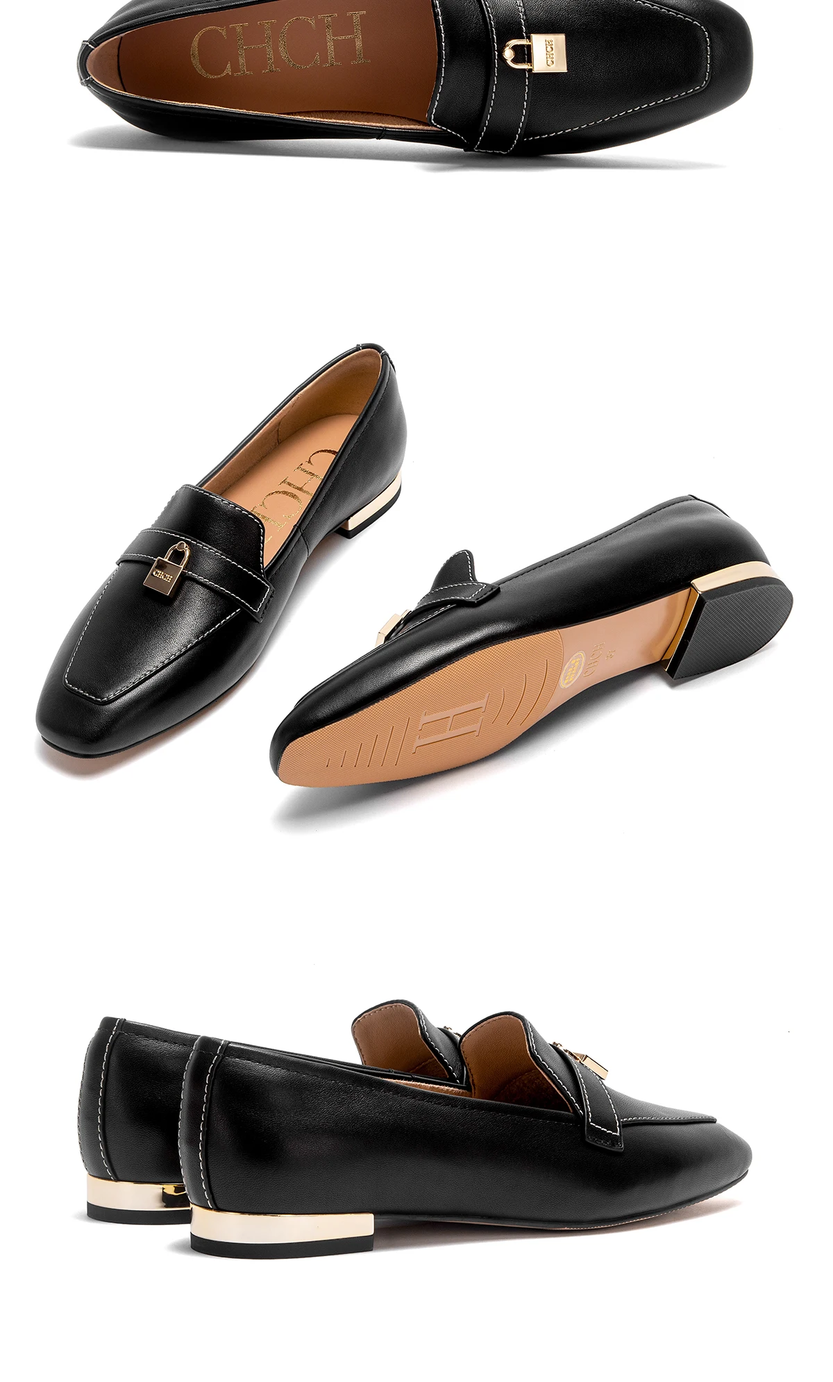 CHCH Women’s Flat Shoes 2025 Autumn New Comfortable Cow Leather Black Business Commuter Women’s Shoes