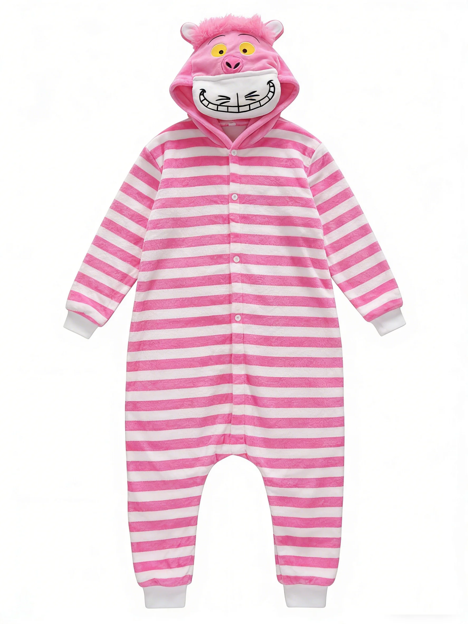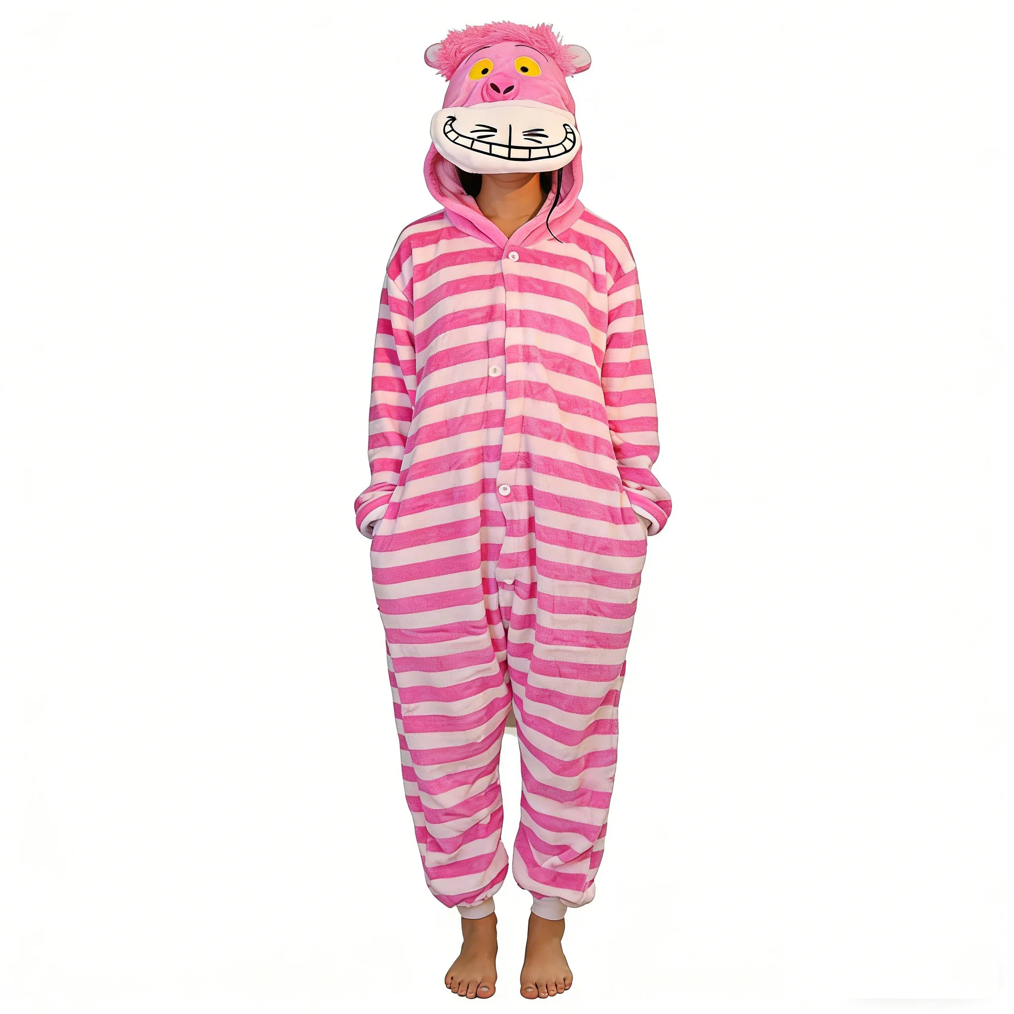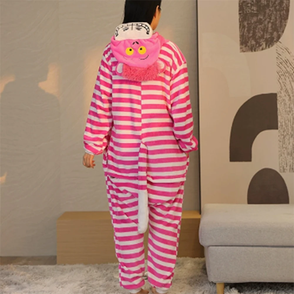 Cheshire Cat Cartoon One-Piece Pajamas Flannel Men and Women Home Wear Autumn and Winter Home Clothing for Autumn and Winter