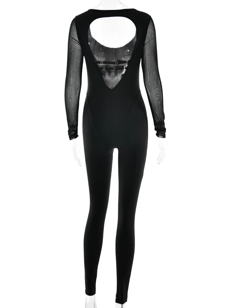 Chic Backless Sports Jumpsuits Women Long Sleeve Hollow Out Sports Yoga Bodysuit Female High Waist Tunics One Piece Gym Overalls