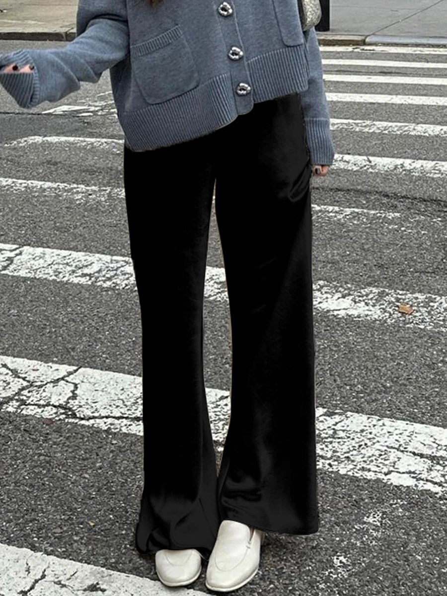 Chic Satin Wide Leg Dress Pants Women’s Stylish Elastic Waist Loose Fit Long Trousers for Streetwear Work Solid Color