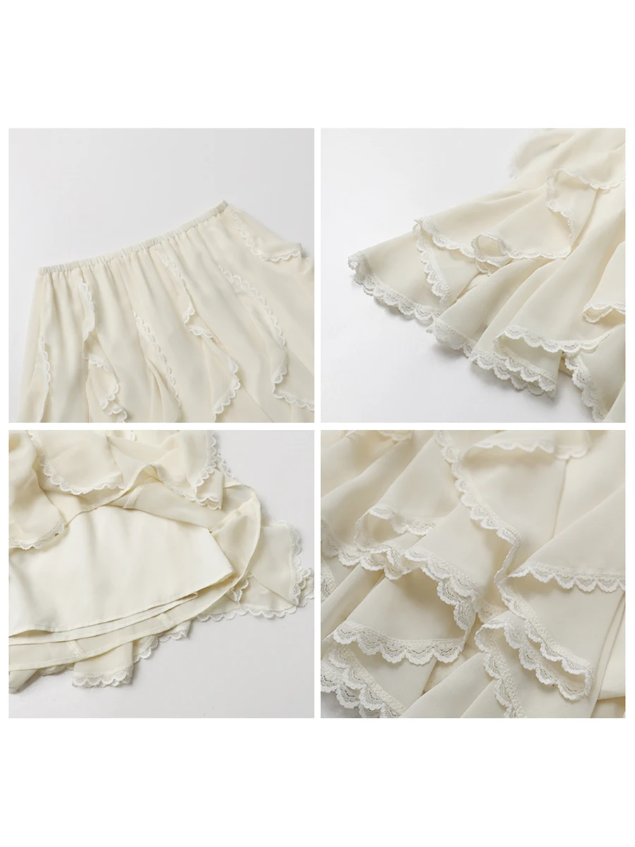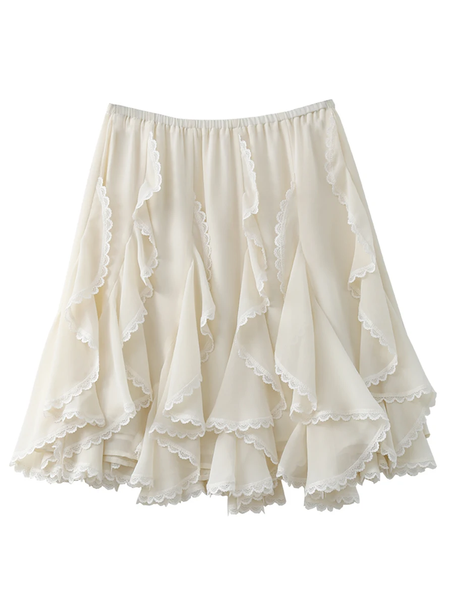 CHIC VEN Korean Women Skirts A Line Loose Casual New High Waist Irregular Lace Half Length Female Skirt Spring Summer 2025