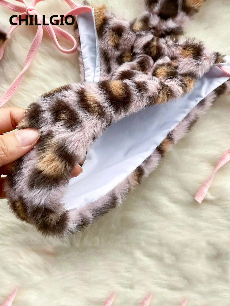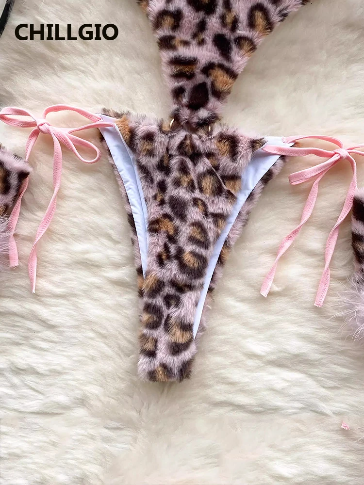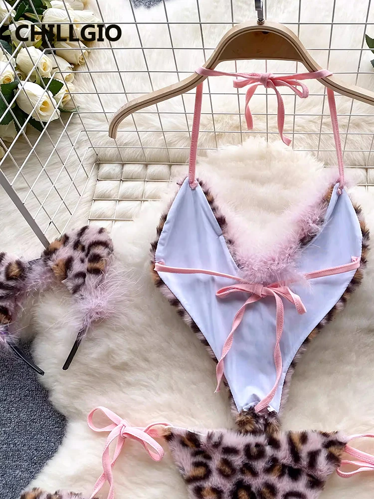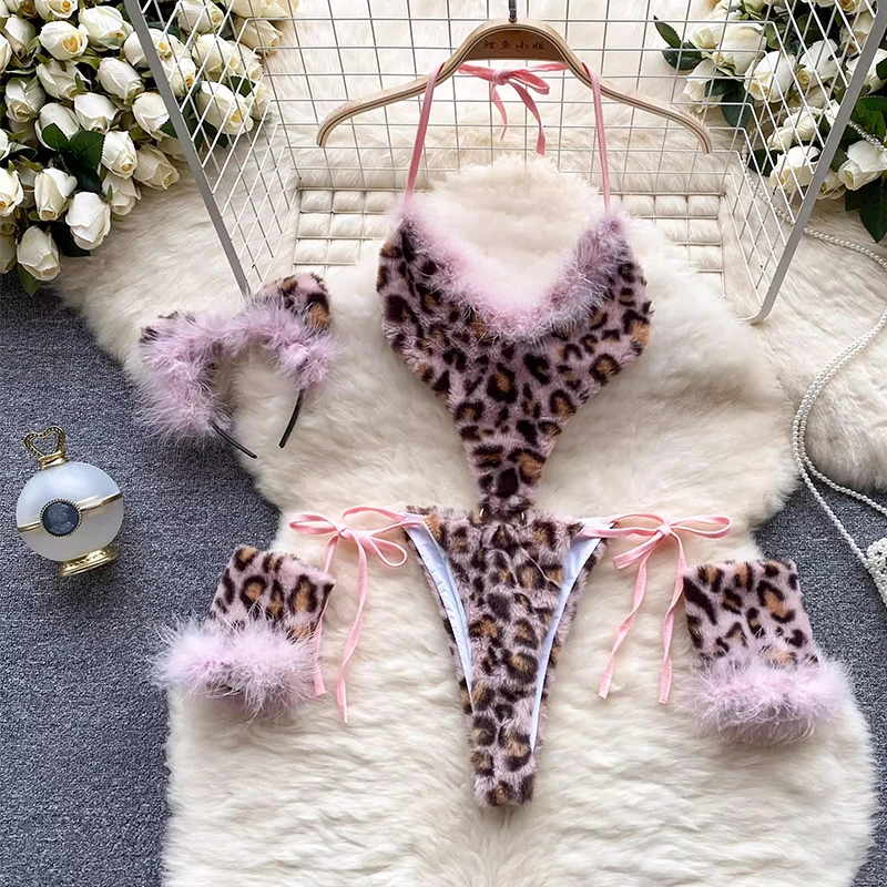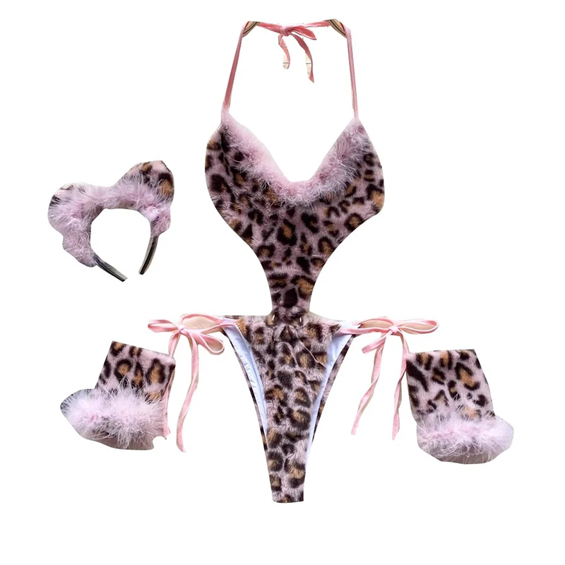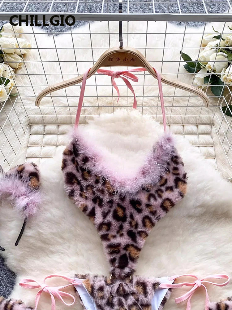 CHILLGIO Women Leopard Print Velour Bodysuits Fashion One Piece Combination Catsuits Halter Vintage Bodycon Sexy Onesie Lingerie