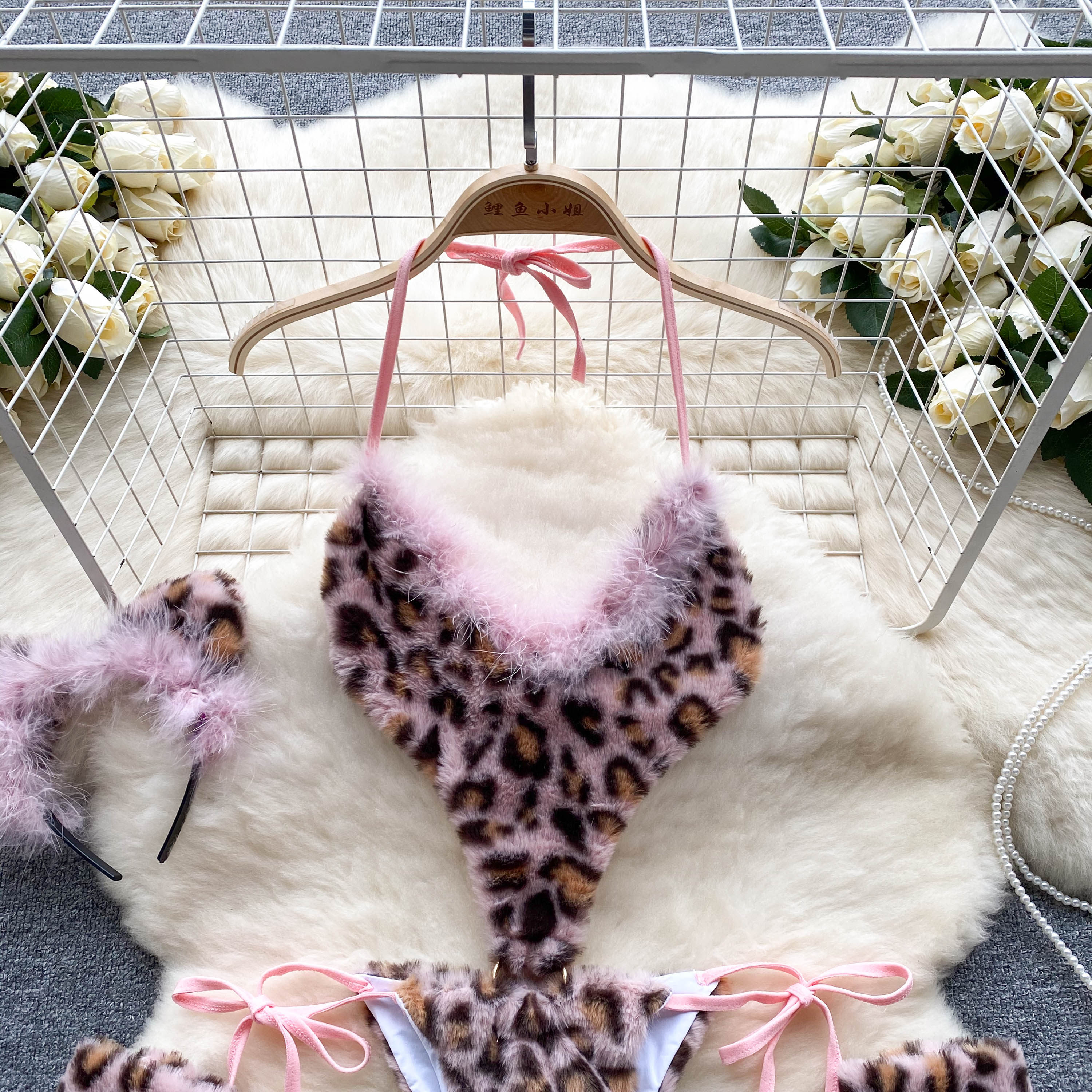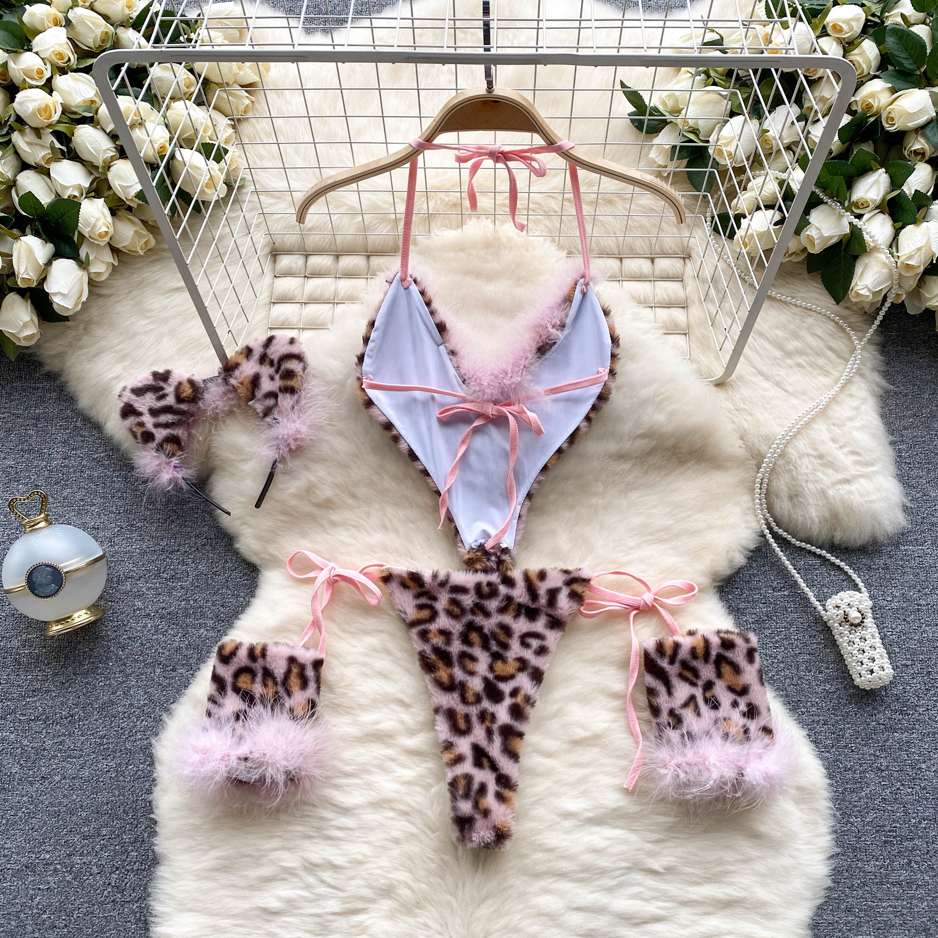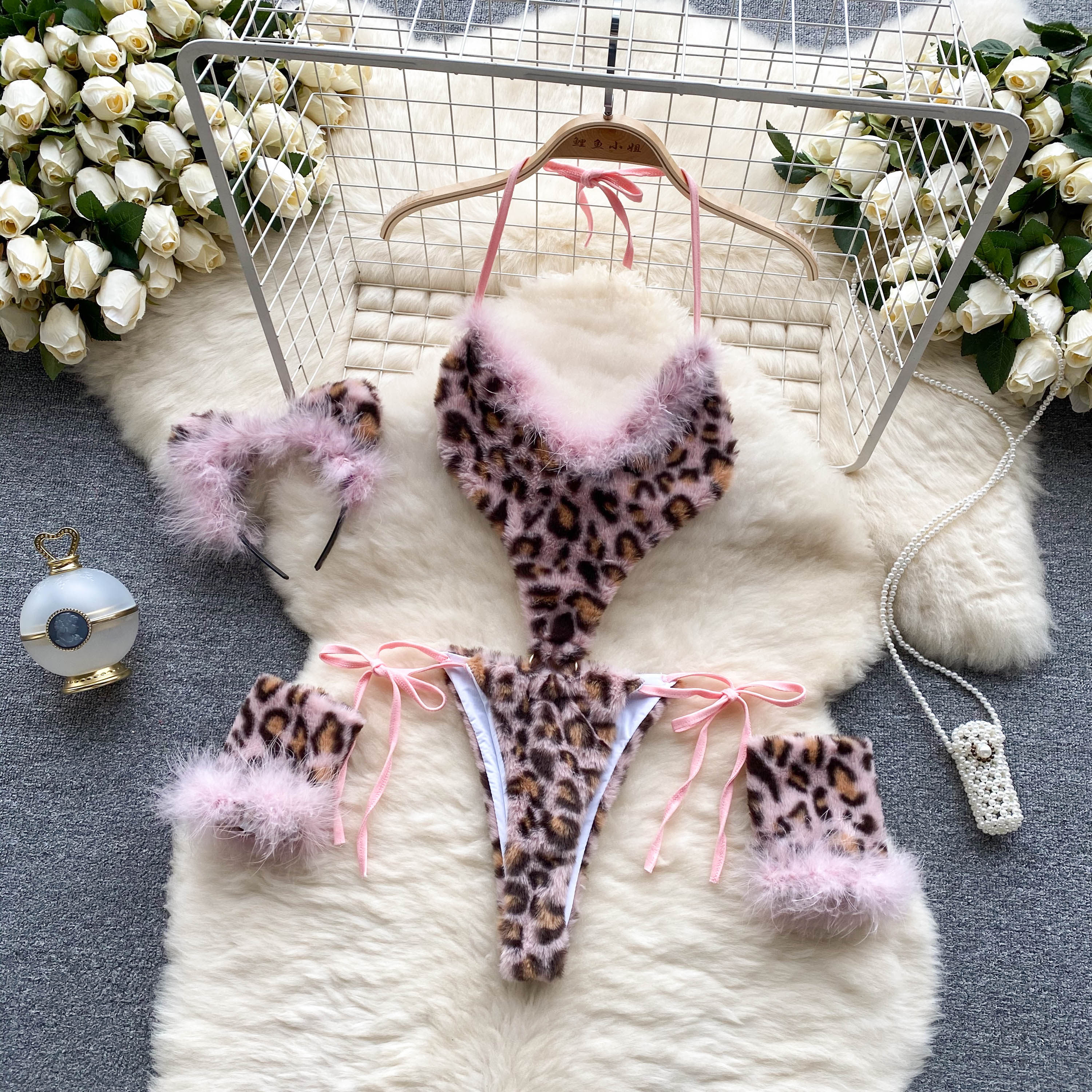 CHILLGIO Women Leopard Print Velour Bodysuits Fashion One Piece Combination Catsuits Halter Vintage Bodycon Sexy Onesie Lingerie