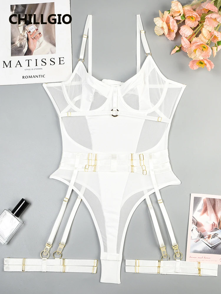 CHILLGIO Women Sexy Transparent Mesh Bodysuits Summer Hollow Fashion Erotic Rompers Sheer One Piece Combination Tight Catsuits