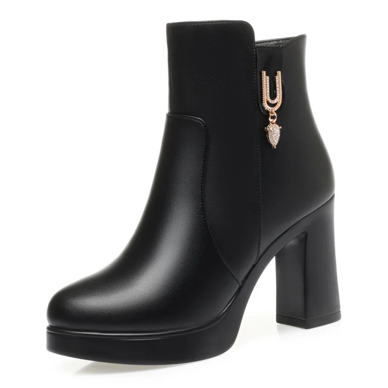 CINESSD Women’s Boots Warm Wool Booties High Heel Ankle 2023 New Winter Boots