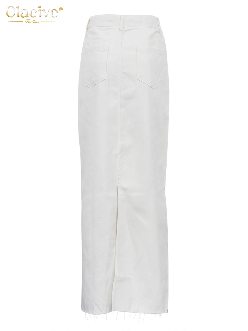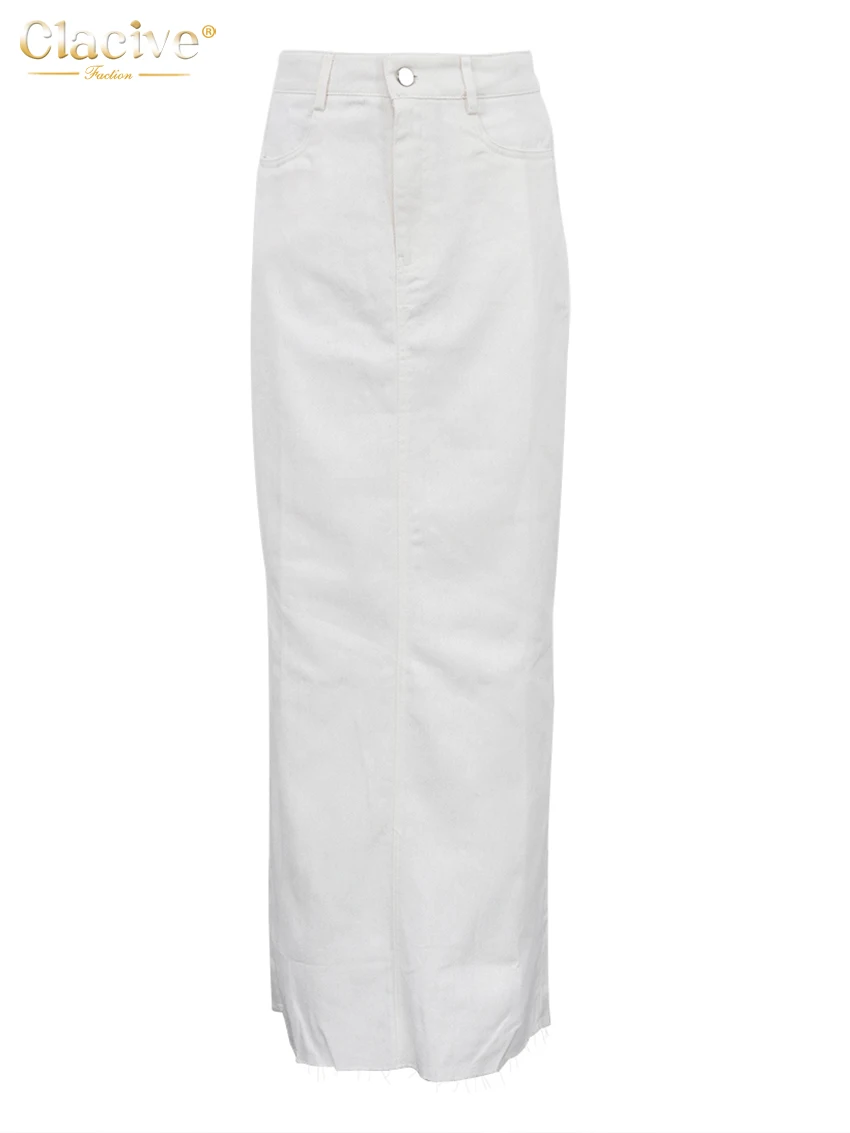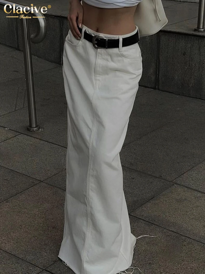 Clacive Fashion Loose Beige Denim Skirts For Women 2025 Casual High Waist Long Skirt Elegant Classic Solid Skirt Female Clothing