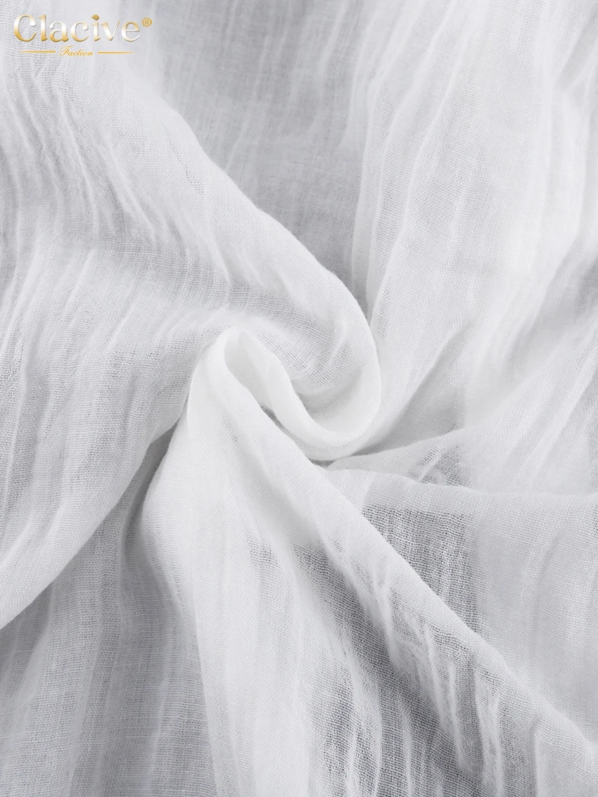 Clacive Fashion White Cotton Woman Blouse 2024 Elegant Stand Collar Puff Sleeve Shirts Casaul Classic Blusa Tops Female Clothing