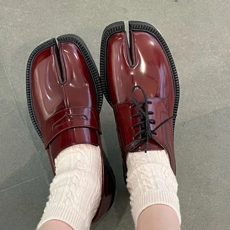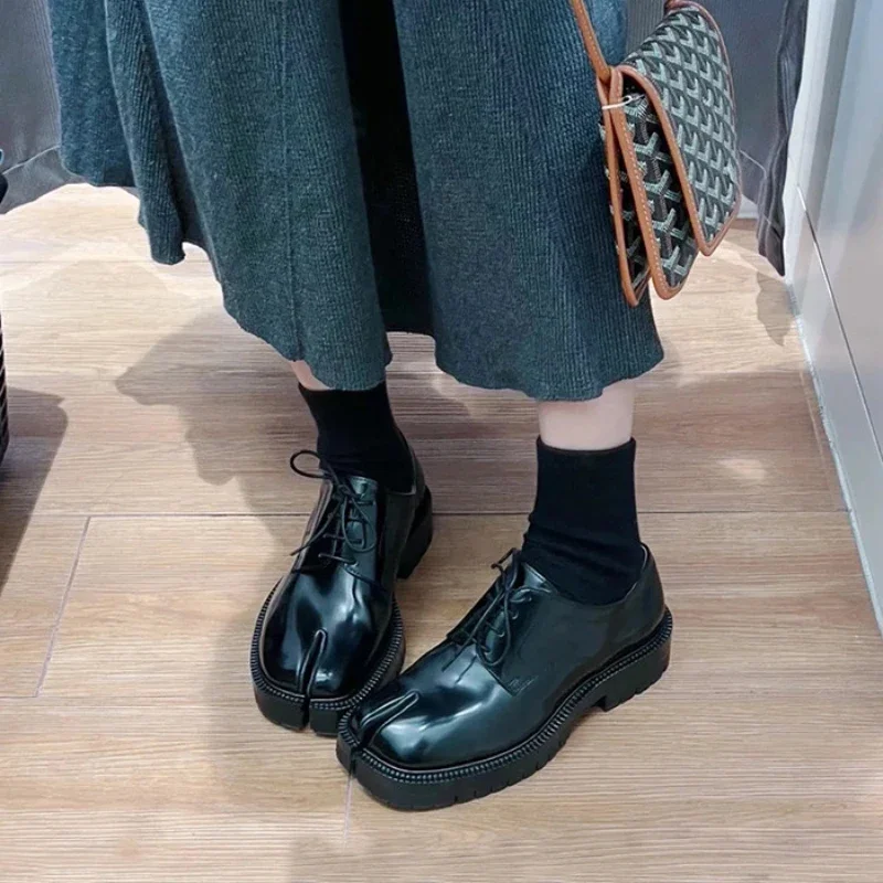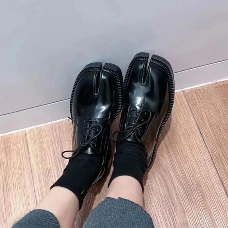 Classic Split Toe Loafers Women Brand Design Fashion Tabi Ninja Lace-up Casual Shoes Chunky Platform Flats Shoes Mujer 2025