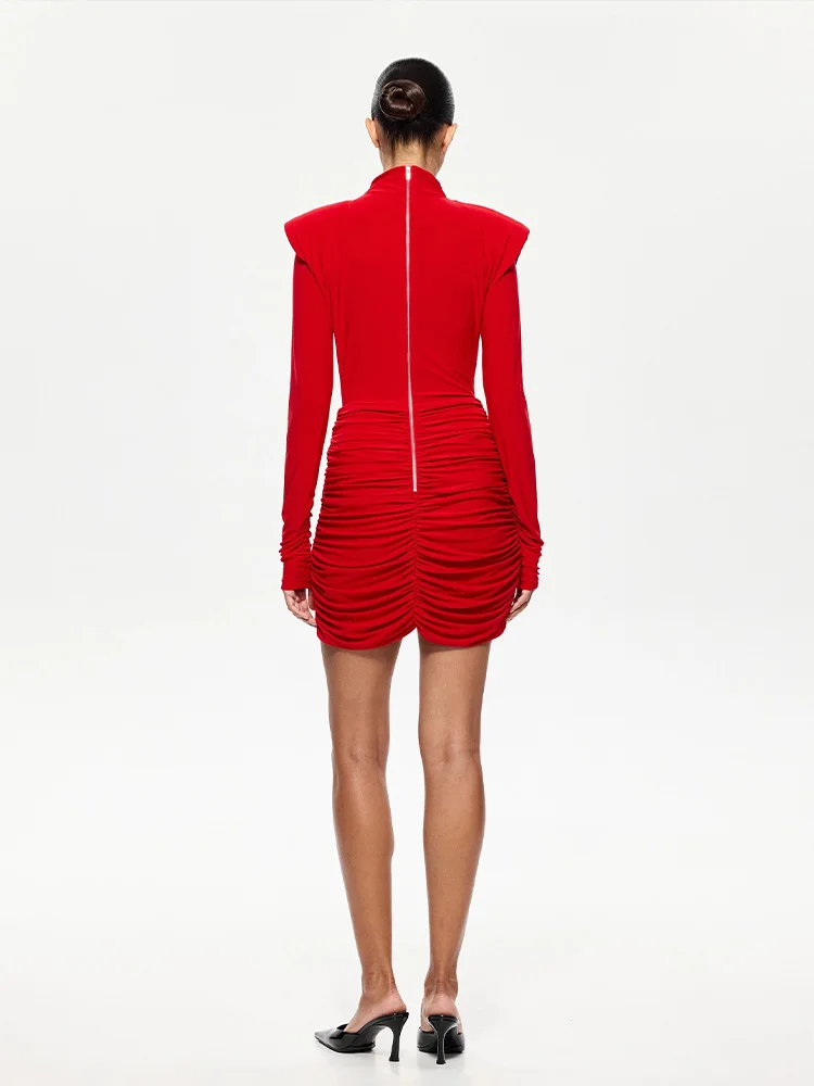 CNYISHE Hollow Out Long Sleeve Solid O Neck Hip Wrap Sheath Zipper Women Dresses Party Outfits Female Bodycon Vestidos Robes