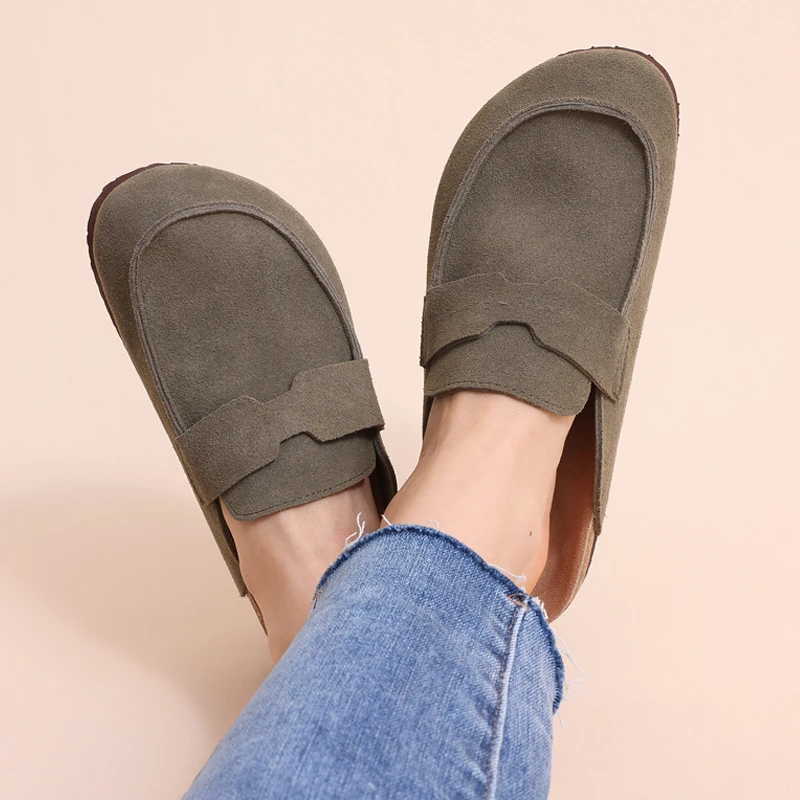 Comwarm Fashion Clogs Slippers Women Cow Suede Cork Slippers Classic Cork House Slippers With Arch Support Outdoor Beach Shoes