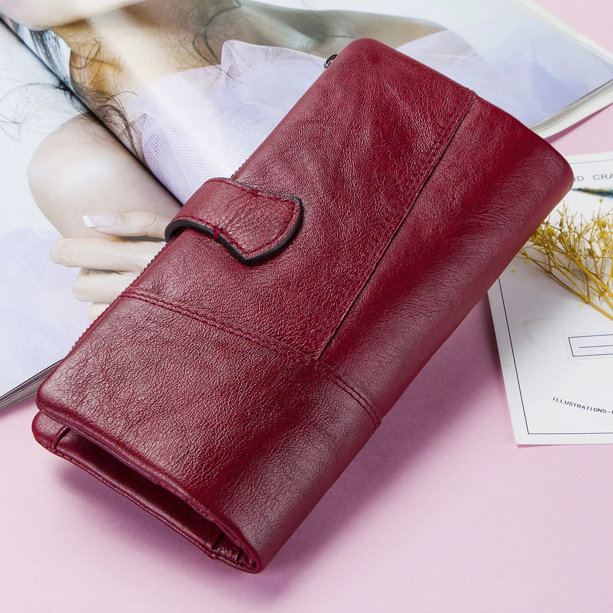 CONTACT’S 100% Genuine Leather Wallet Women Long Coin Purse Clutch Bag Name Engraving Card Holder Money Clip Handbag Men’s Purse