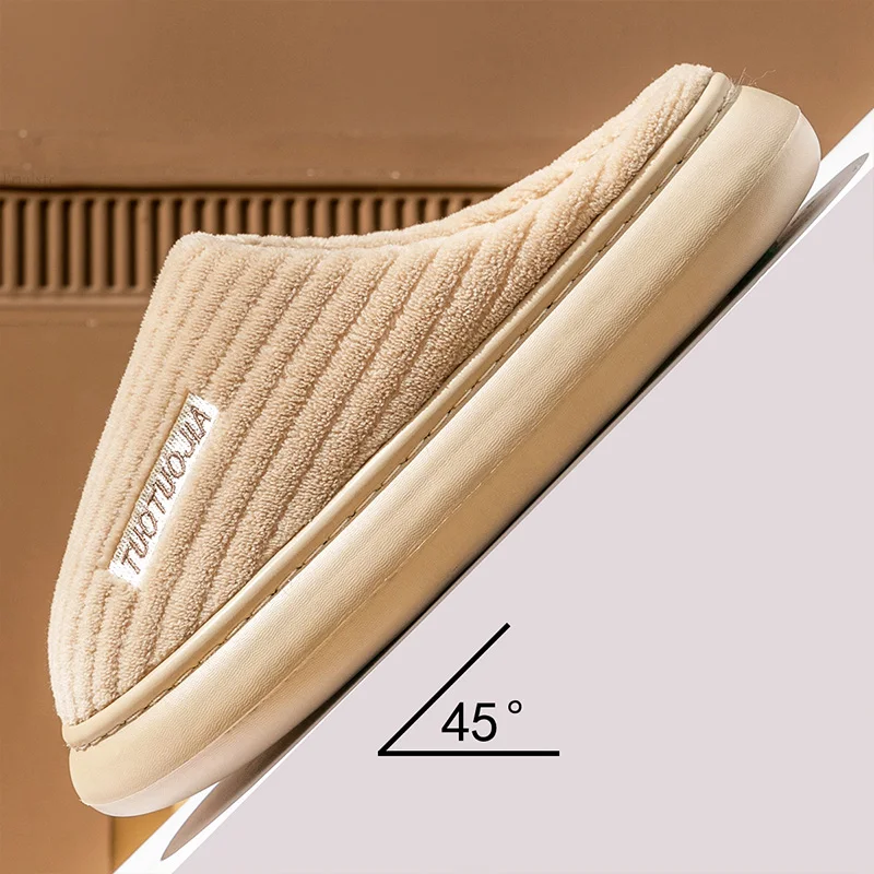 Couple Slippers Indoor Stripe Fluff Memory Foam Fluffy Eva Anti-skid Soft Heel Non Slip Plush Slippers Women’s Winter Houseshoes