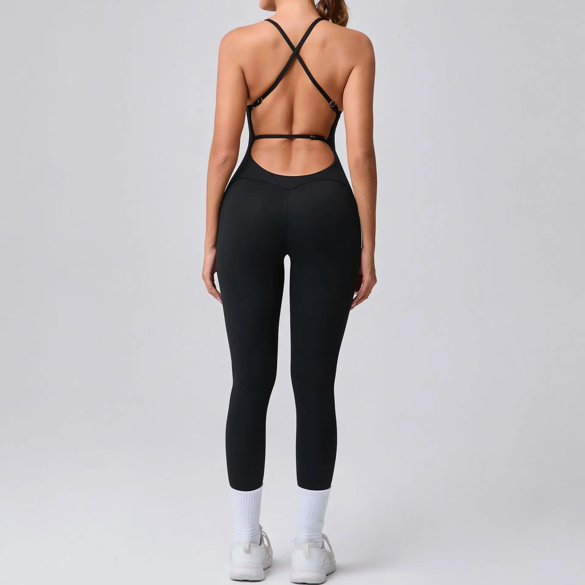 Cross Backless Bodycon Sport Jumpsuit Women Sexy Monkeys One Piece Outfit Sleeveless Sling Gym Fitness Overalls Yoga Set Black