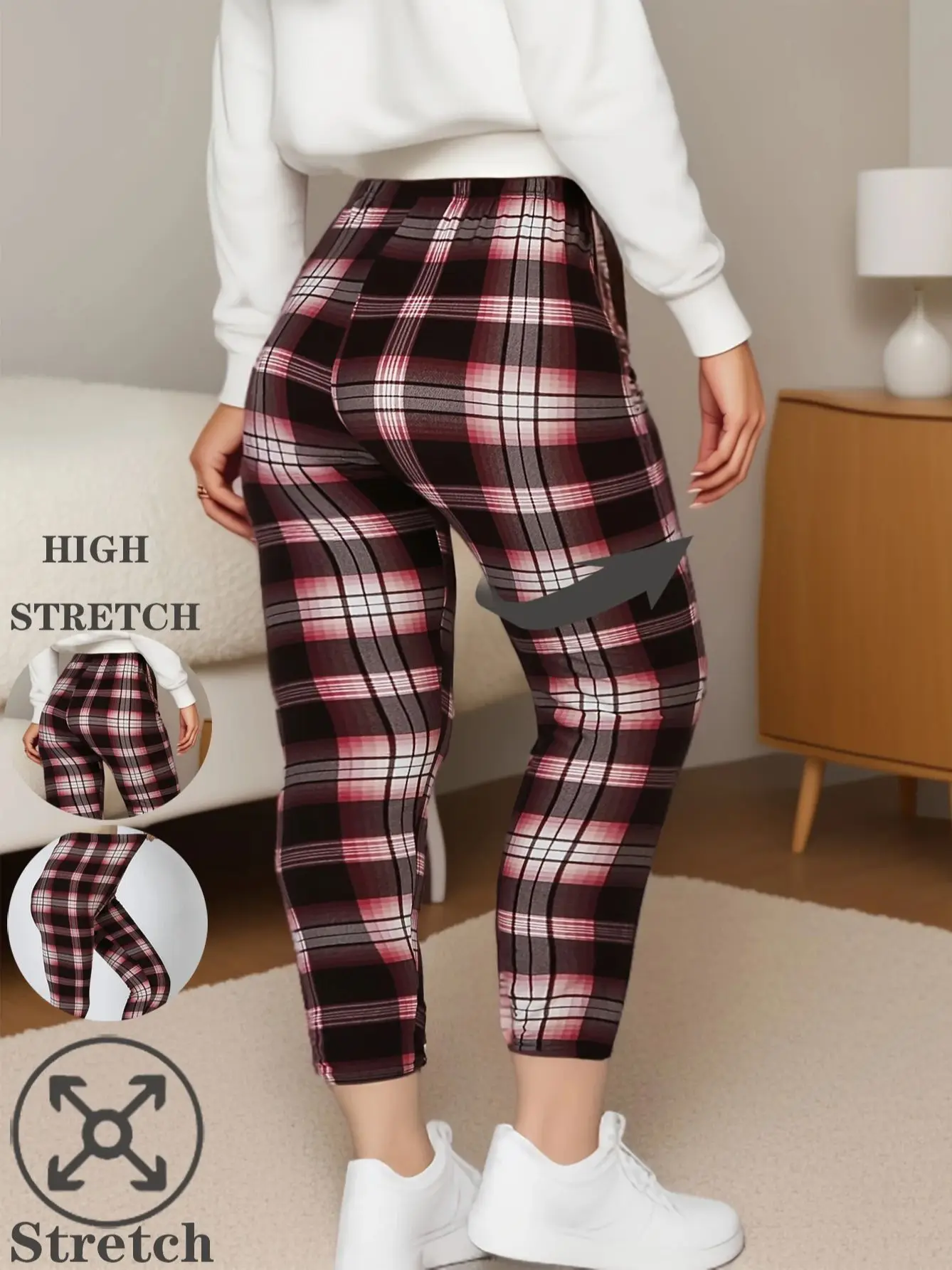 CUHAKCI Plus Size High Stretch Sexy Women’s Tight Fitting Red And White checkered Comfortable Sports And Casual Tight Pants
