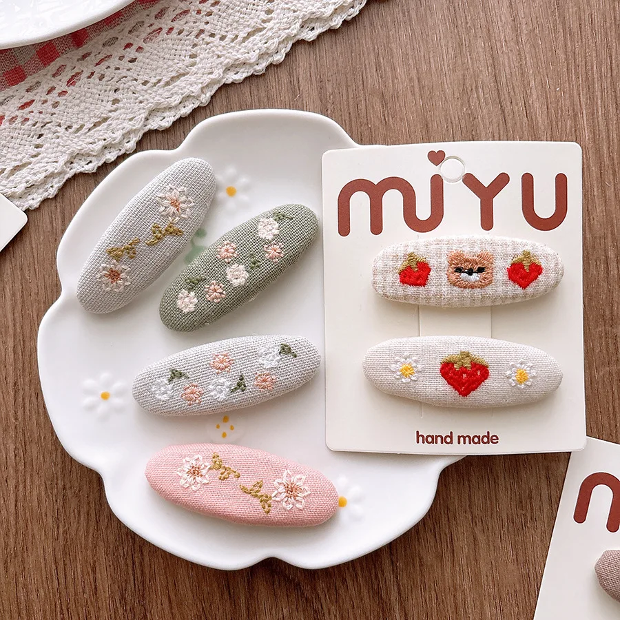 Cute Korean Forest Style Embroidered Cloth Toddler BB Clips Side Hair Clamps Teen Girls Bangs Ornaments