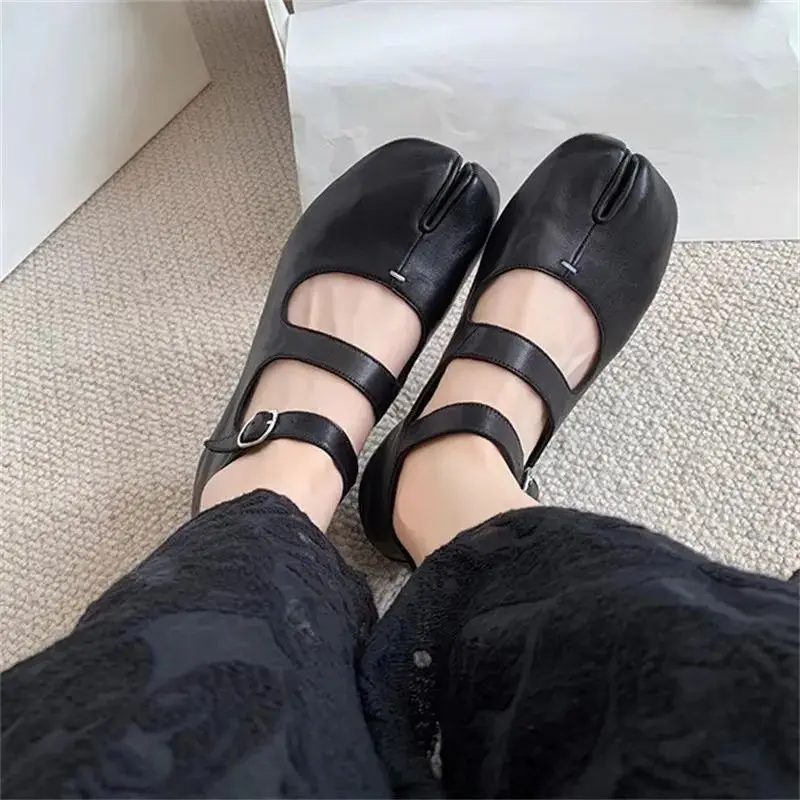 Designer Split Toe Flats Shoes Buckle Strap Women Comfort Bottom Ballerina Shoes Soft Leather Solid Outdoor Footwear