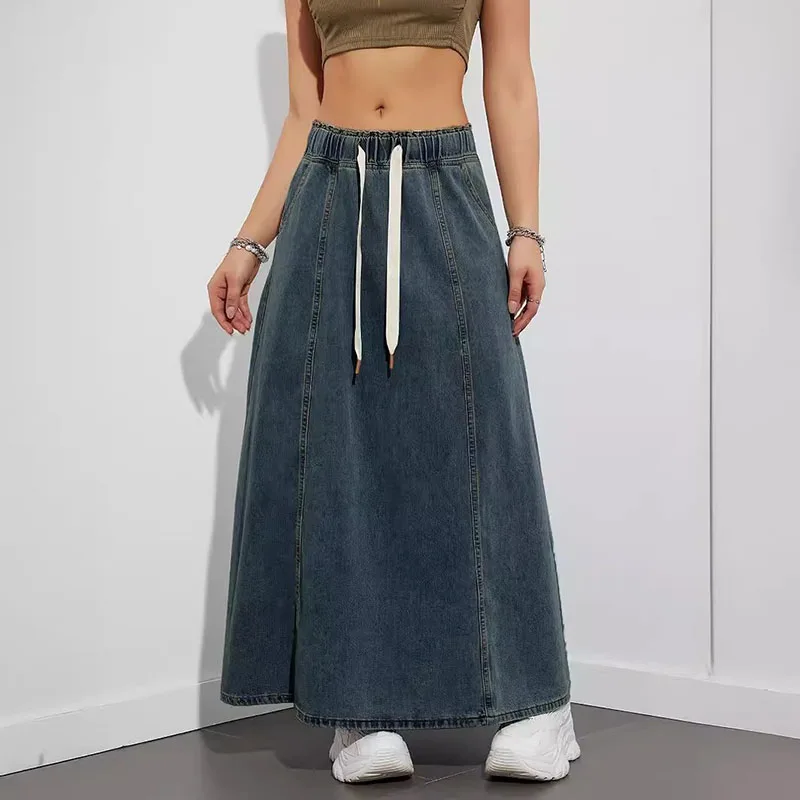 DongCMY Women’s Denim Long Skirts Elastic Waist Loose Solid Color High Waist Big Skirt Denim Skirt Women Casual Dress Streetwear
