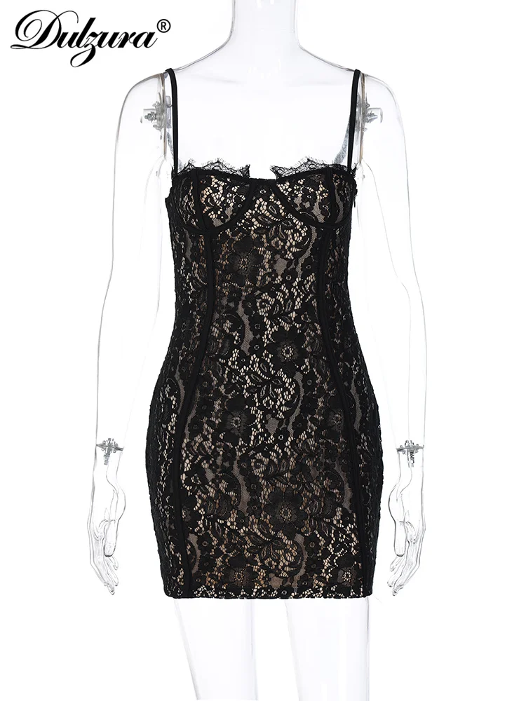 Dulzura 2024 Summer Women Lace Strap Mini Dress Bodycon Sexy Streetwear Party Club Outfits Drop Shipping Clothes Y2K Outfits