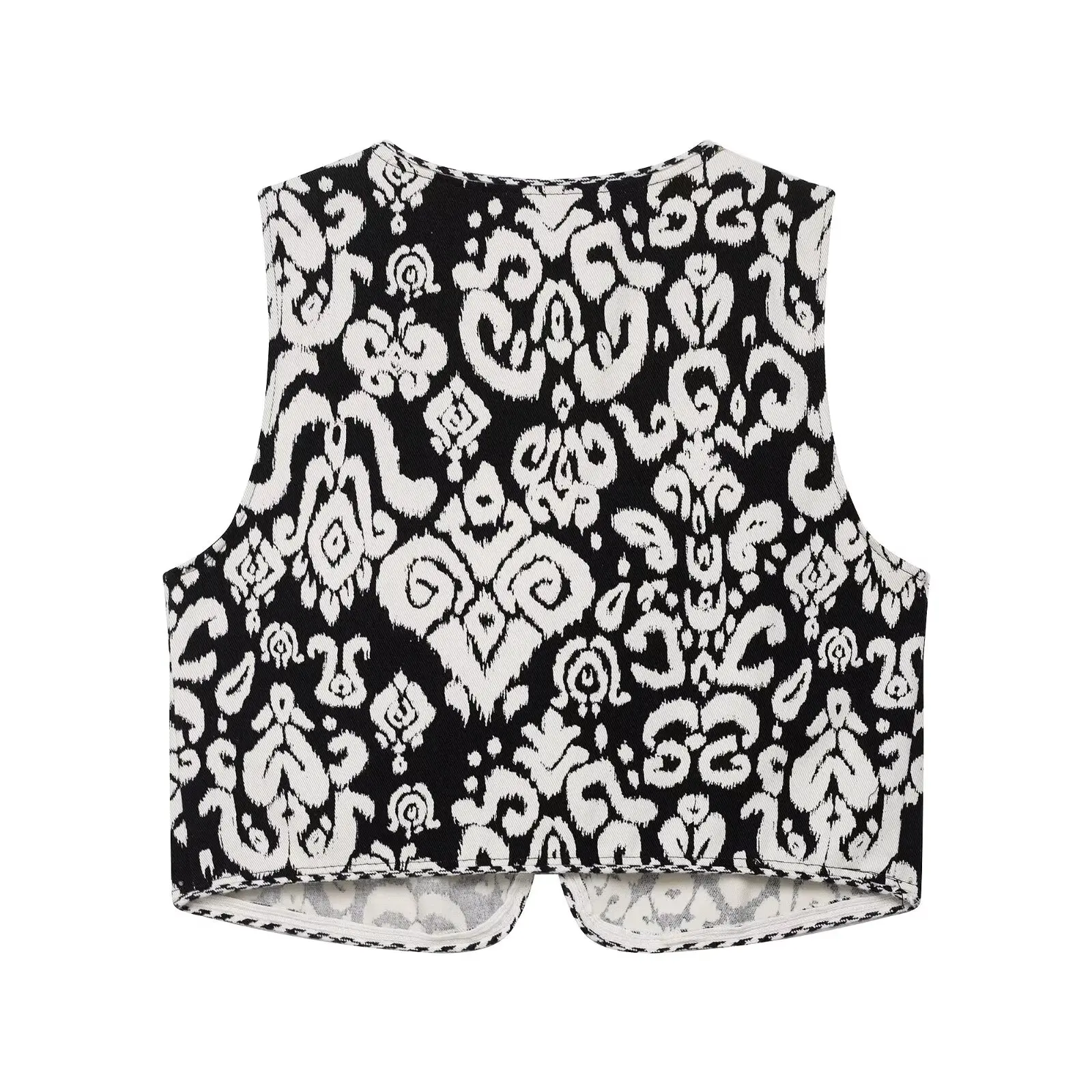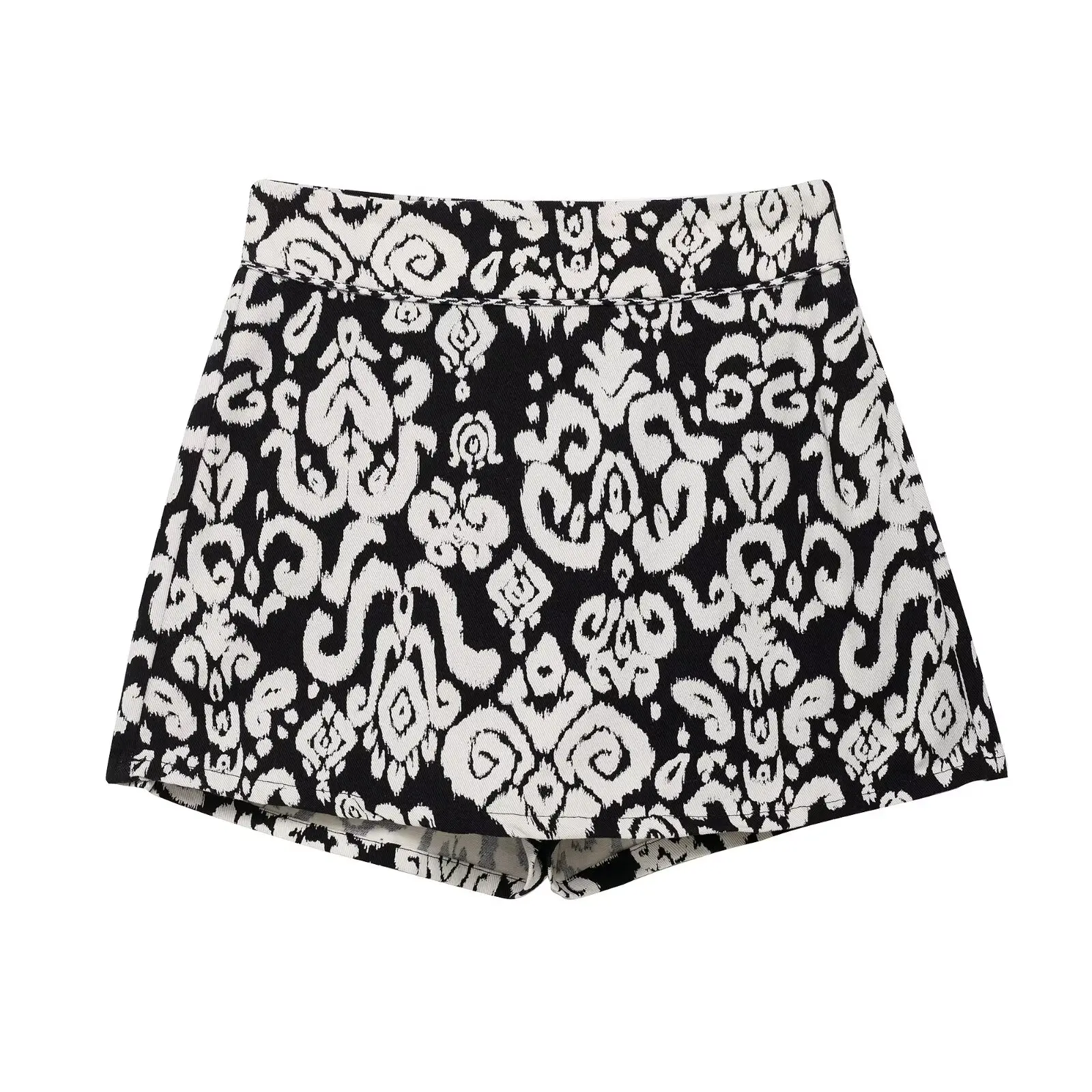 DUOPERI 2025 New Women 2 Piece Set Printed V-Neck Vest & Side Zipper Skirts Shorts Female Elegance Chic Casual Shorts Set