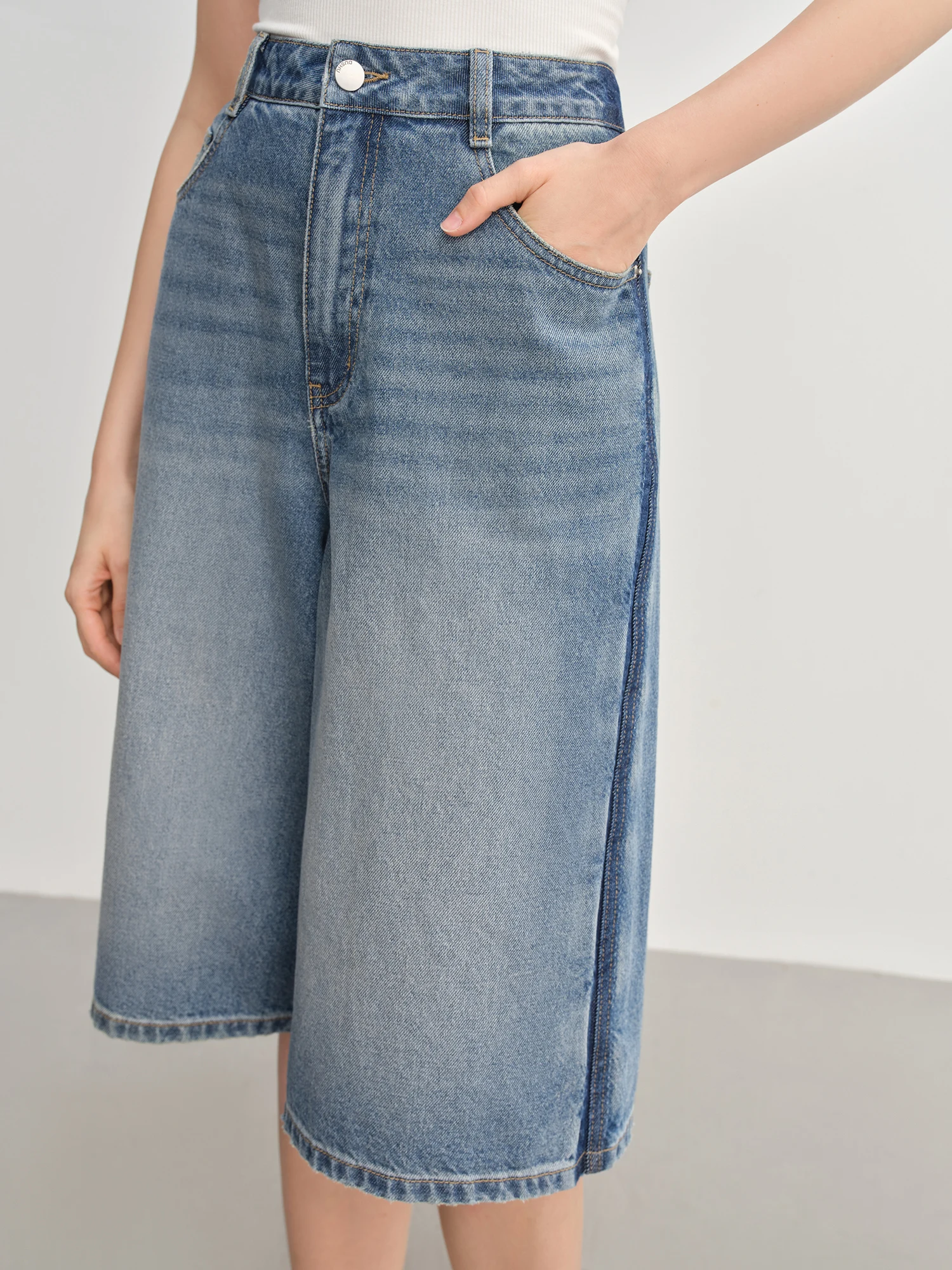 DUSHU Plus Size Women’s Casual High-Waisted 7/8 Length Wide-Leg Jeans – 2025 New Arrival Jeans 25DS82853