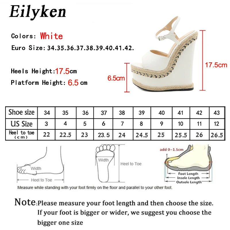 Eilyken Size 35-42 White Sandals For Women Summer Fashion Open Toe Ankle Buckle Strap Platform Wedge High Heels Dress Lady Shoes