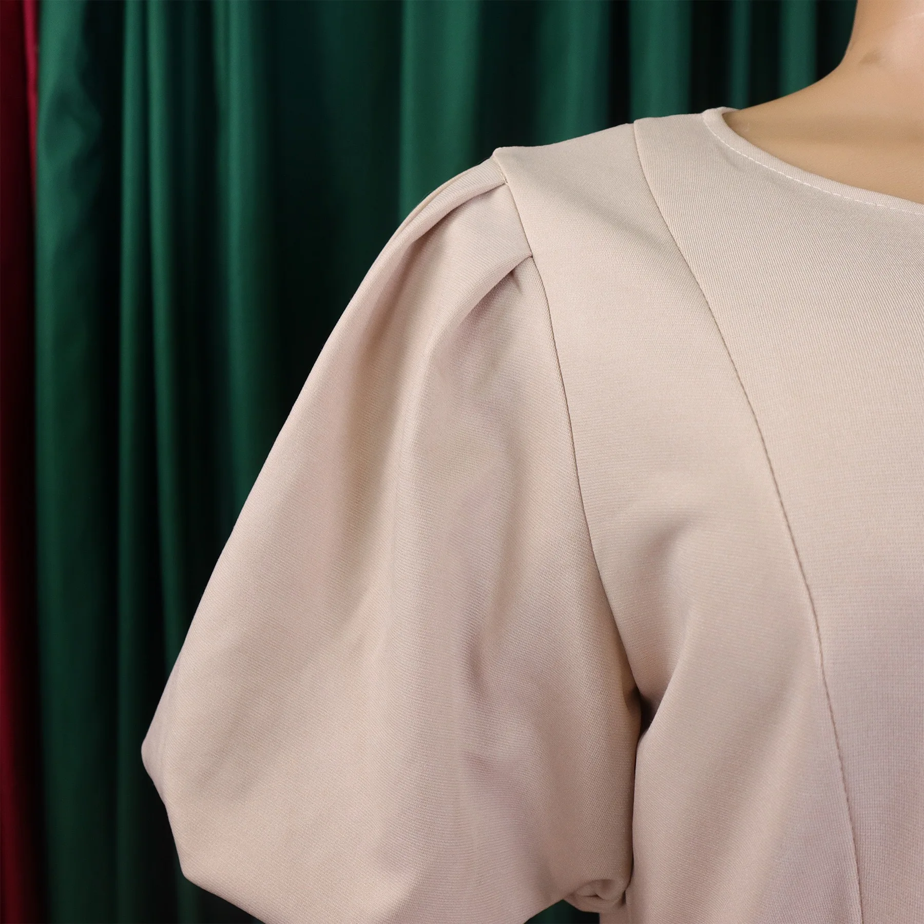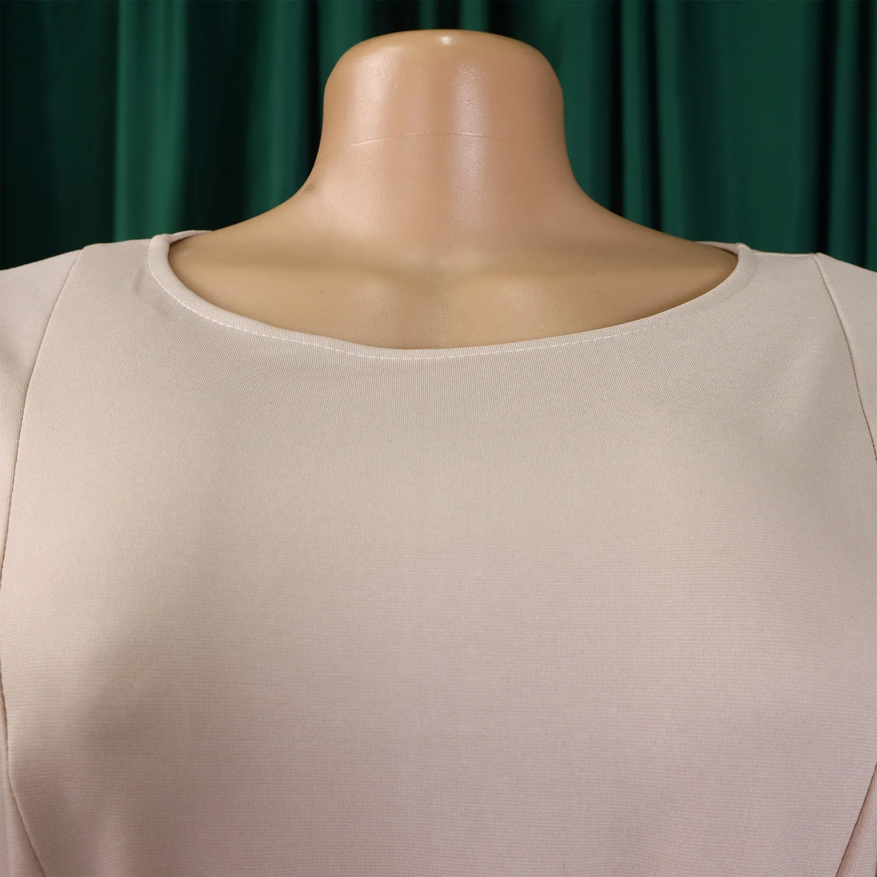 Elegant Office Dress for Women Professional O Neck Short Sleeve Belt Waisted A Line Mid Calf Formal Business Work Dress Midi New