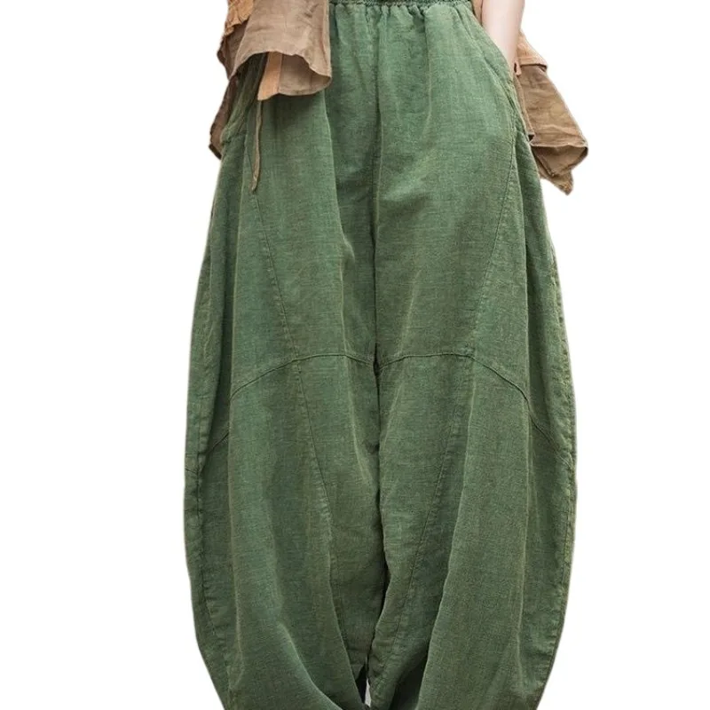 Elegant Women’s Cotton Linen Baggy Cargo y2k Pants Vintage Elastic Waist Trousers Loose Casual Long Wide Leg Oversize Clothes