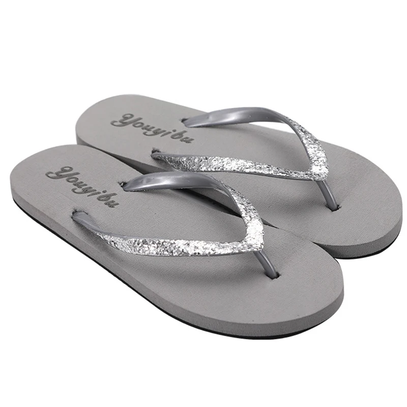 EOFK Women Flip Flops Slippers Summer Outdoor Fashion Bling Women Shoes Slippers Beach Summer Flip Flops Sandalias EVA TPU
