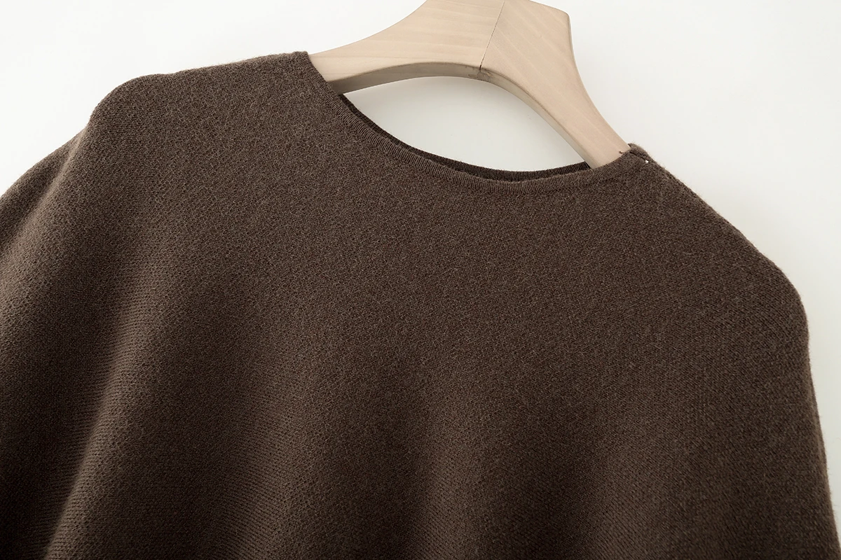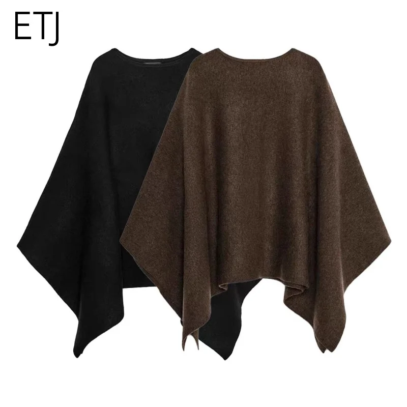 ETJ 2025 women’s new fashion oversized loose version of the round neck cape sweater solid color bat sleeve sweater