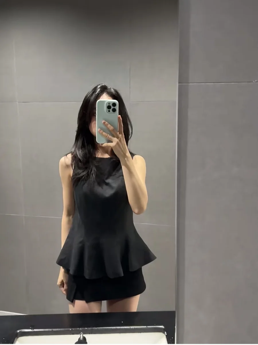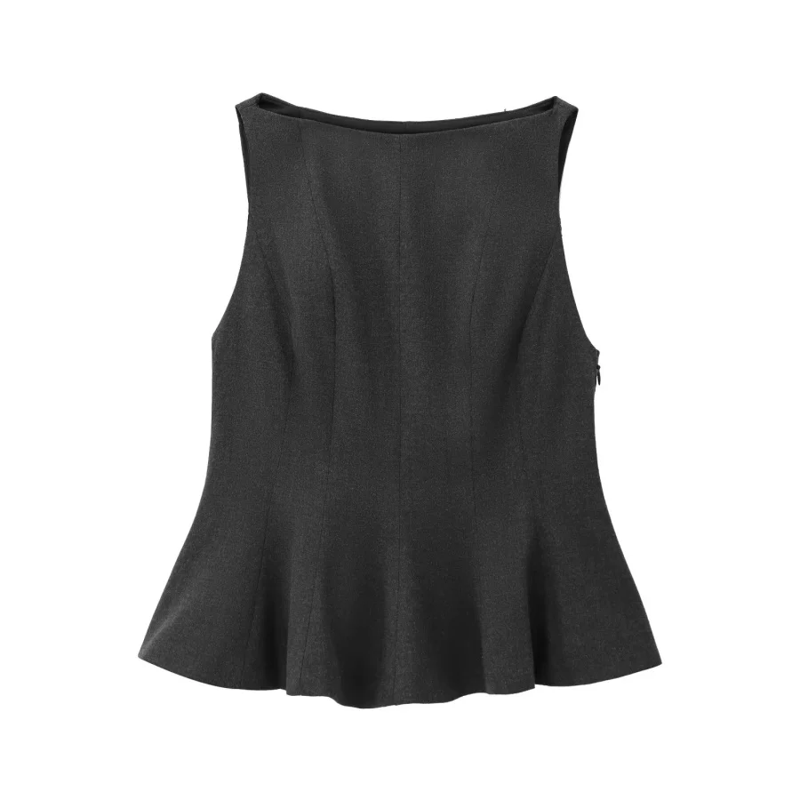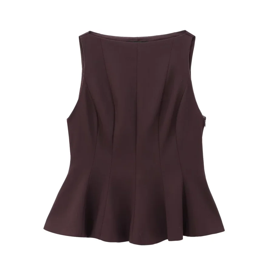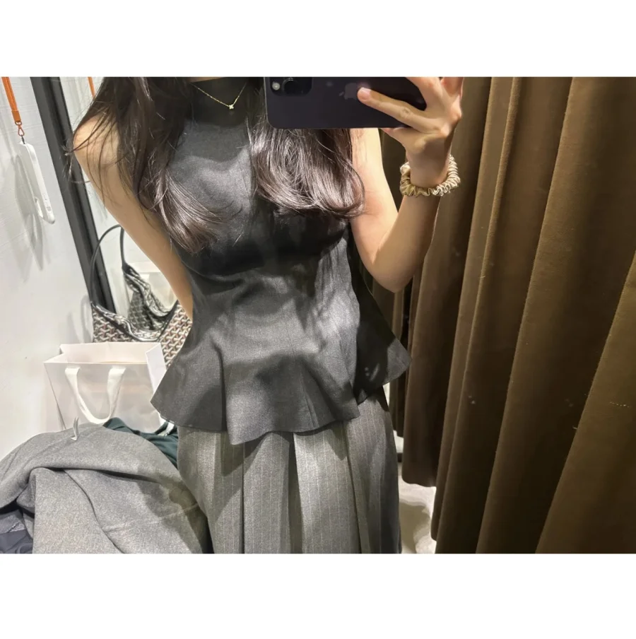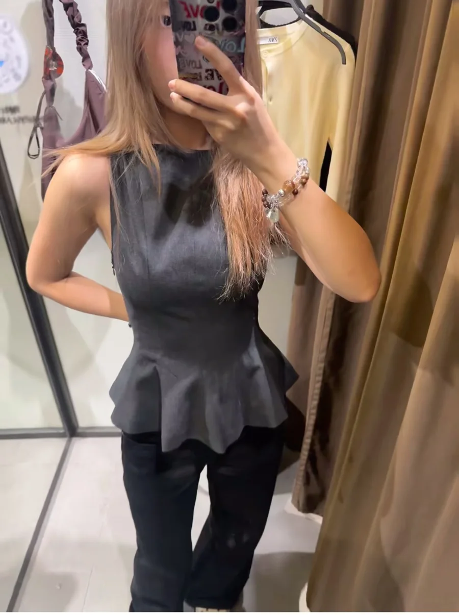 ETJ Fall/Winter 2025 New Women’s Fashion Elegant ruffled hem round neck sleeveless waist slim-fit top 4661124