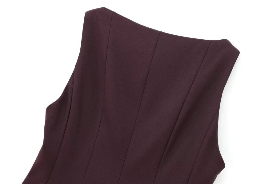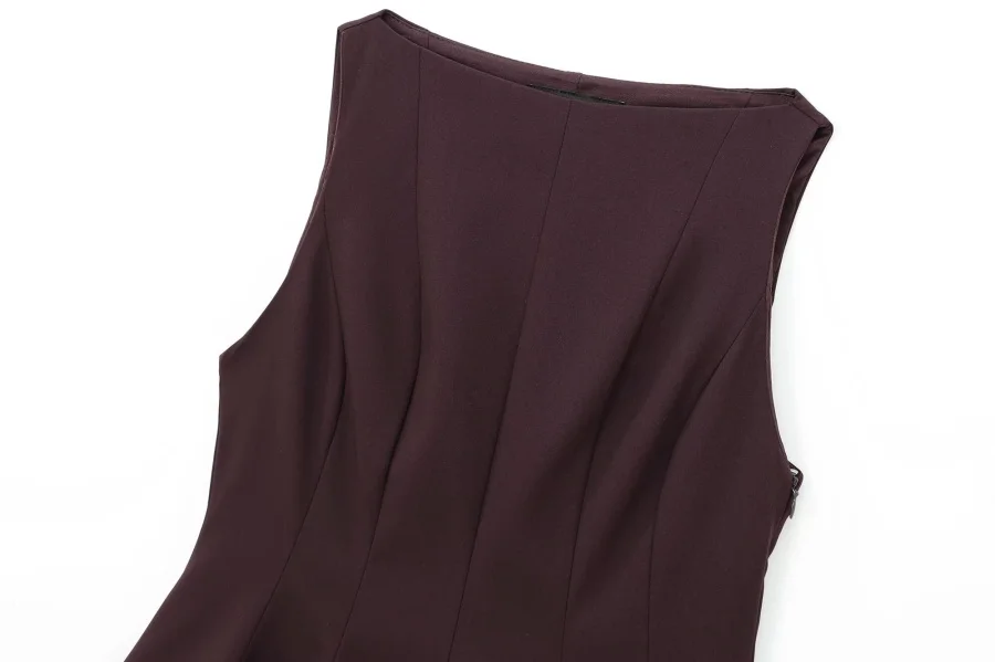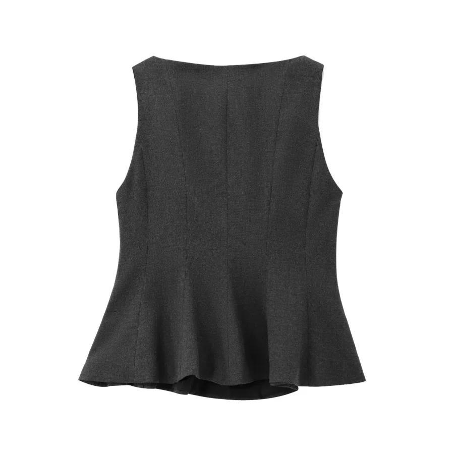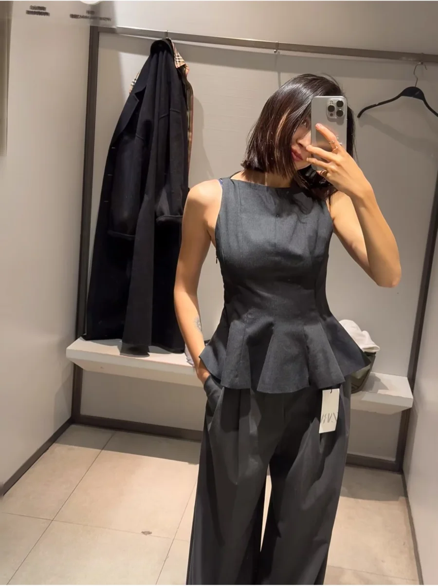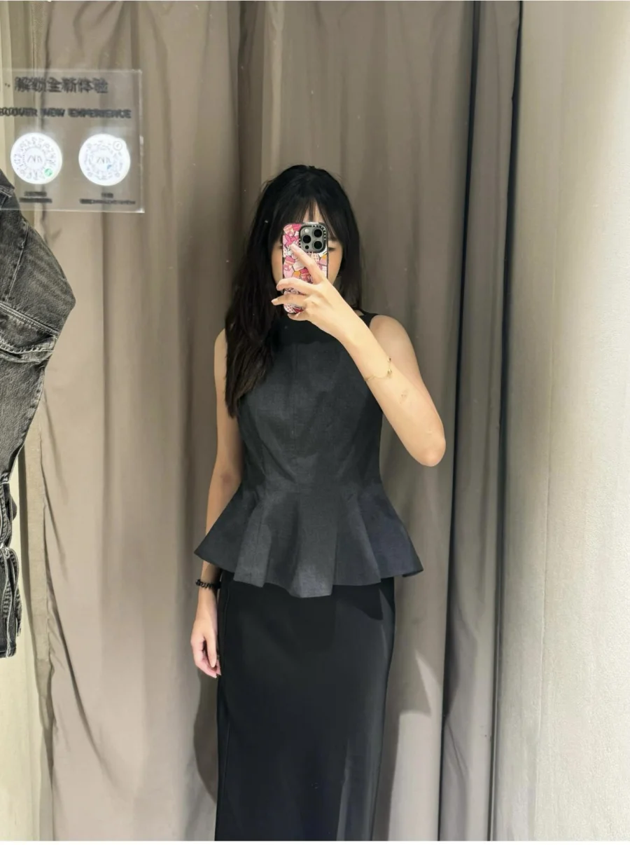 ETJ Fall/Winter 2025 New Women’s Fashion Elegant ruffled hem round neck sleeveless waist slim-fit top 4661124