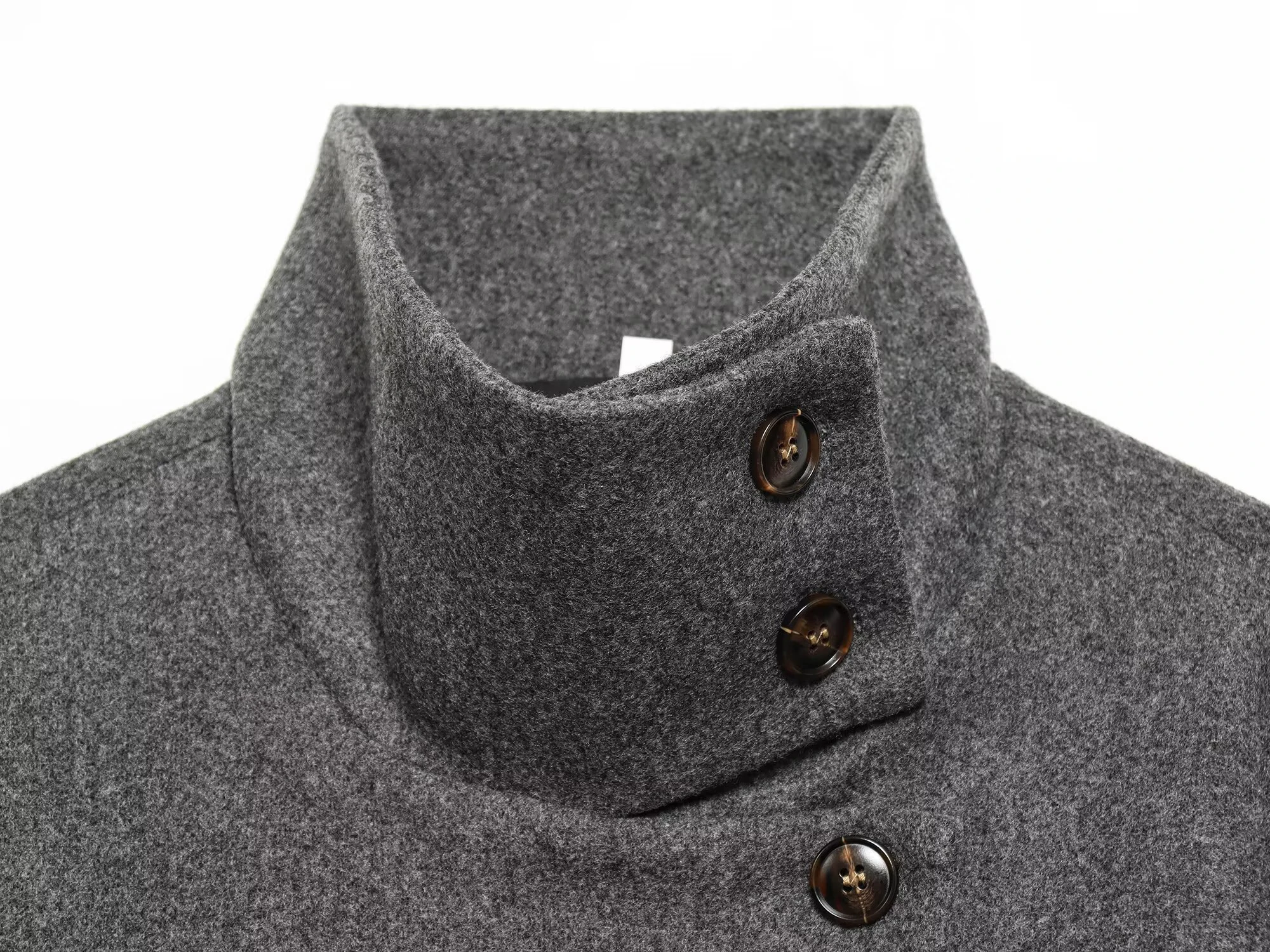 European and American 2025 Winter New Women’s Loose and Casual Style Simple Long Sleeve Buckle Stand up Collar Coat