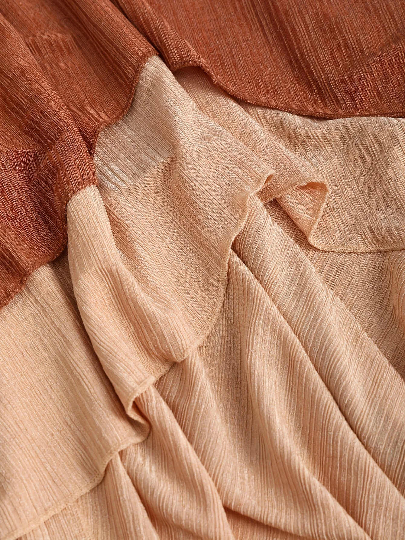 European and American fashion plus-size women’s dress with patchwork, tie, hemp rope, tassel pockets, ruffled hem and ribbed
