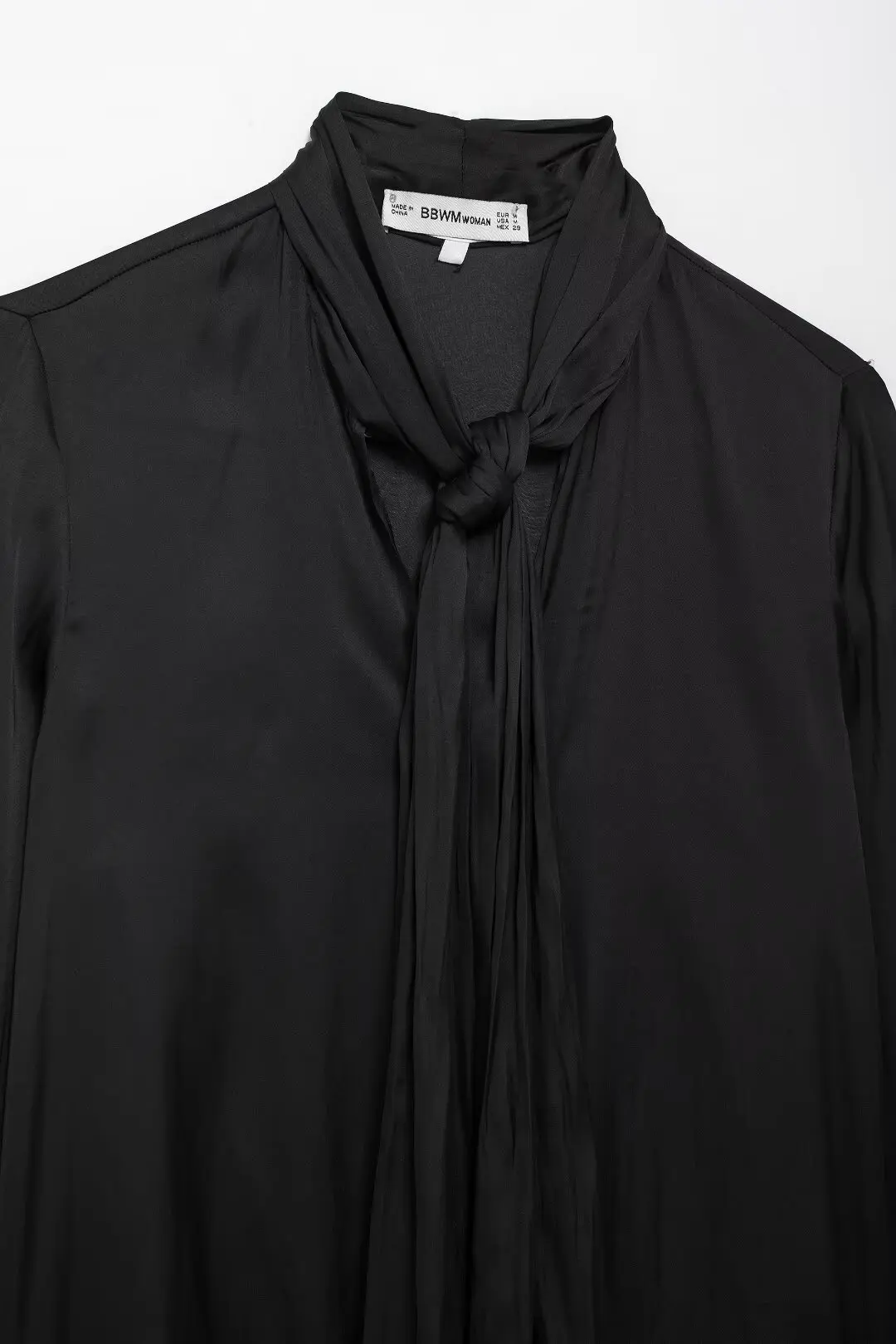 European And American Style Women’s Clothing New Fashion Versatile Solid Color Bow Decoration Round Neck Long Sleeved Shirt